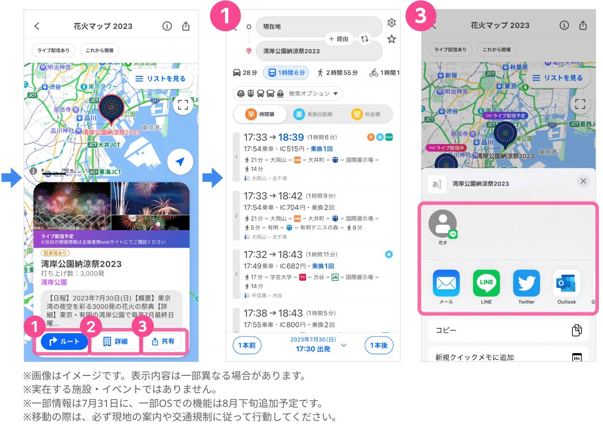 本機能を利用することで、ユーザーは開催スポットを訪れて花火大会を楽しむだけでなく、好きな場所でさまざまな形で花火大会を楽しむことができます。