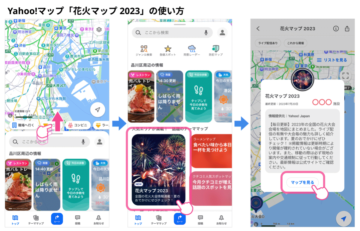 ■Yahoo!マップ 「花火マップ 2023」の使い方