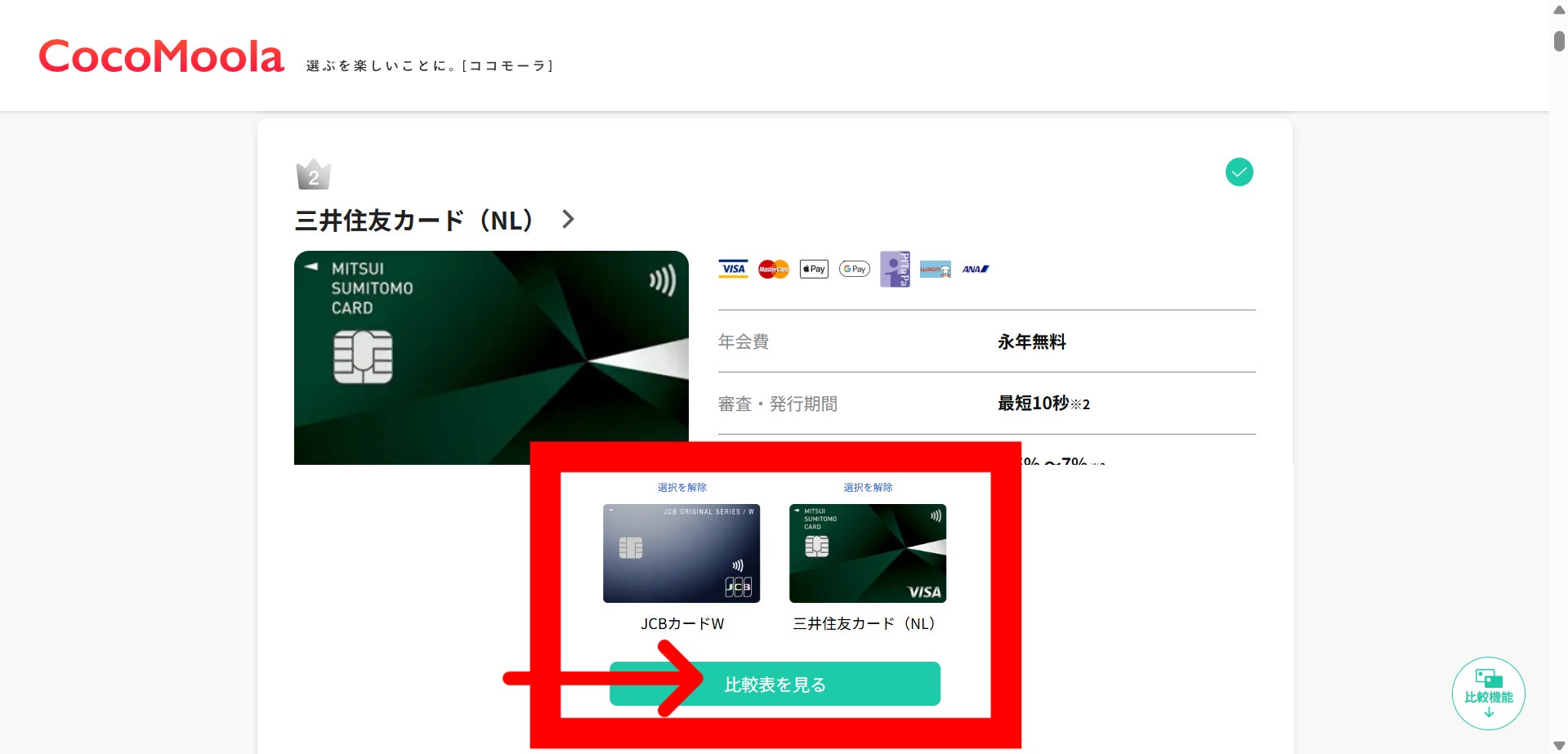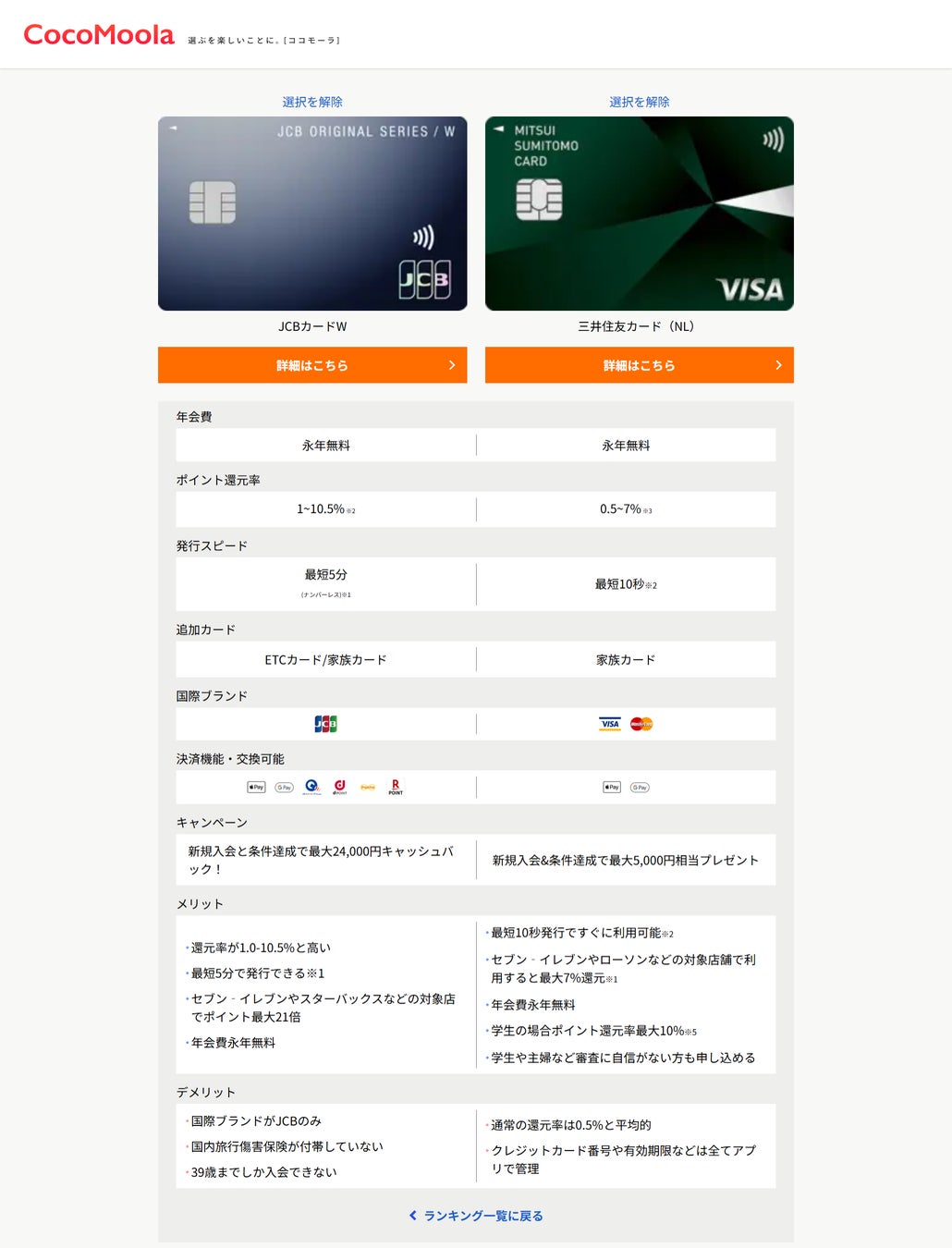 【ココモーラ】クレジットカードの比較機能を追加しました