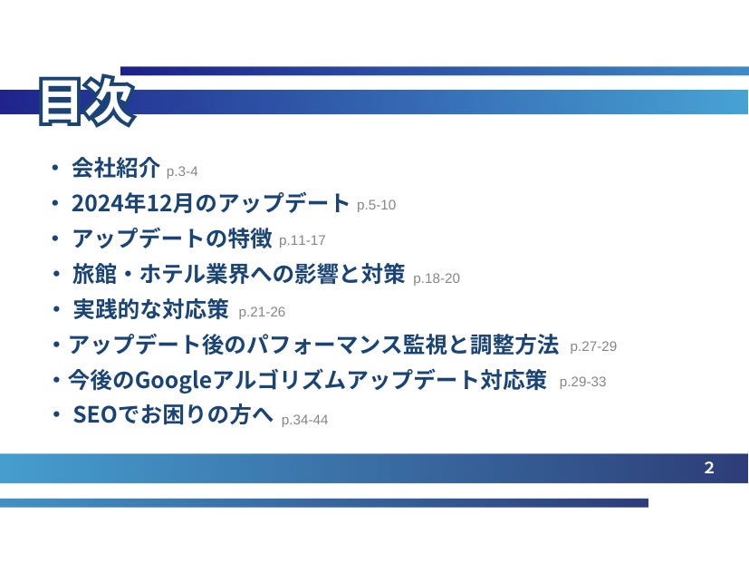 本レポートでは、今回のGoogleアルゴリズムアップデートが旅館・ホテル業界に与える影響と、それに対する実践的な対応策について詳しく解説しています。
