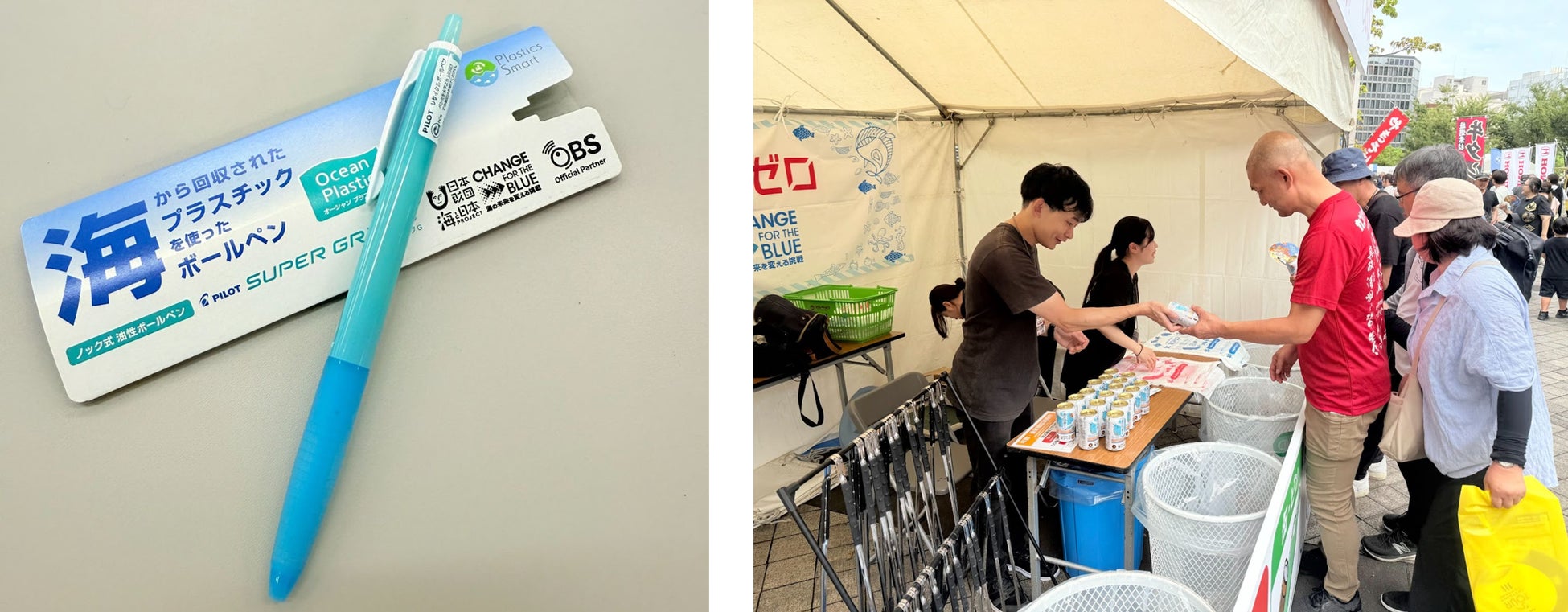 ごみ拾いに参加していただいた先着500名様に、アップサイクル品として海洋ごみで作られたボールペン(パイロット/スーパーグリップGオーシャン)をプレゼントし、多くの方に大変喜んでいただきました。
