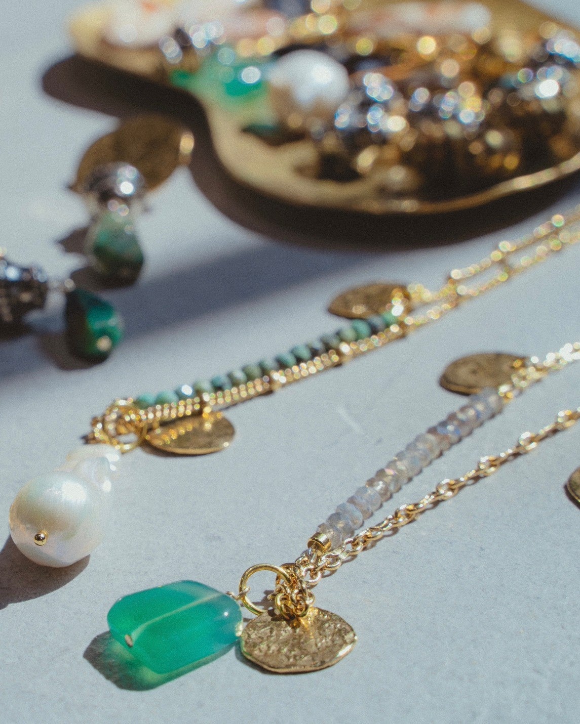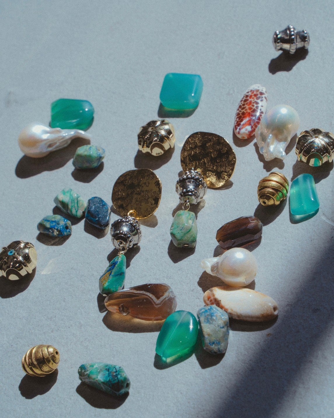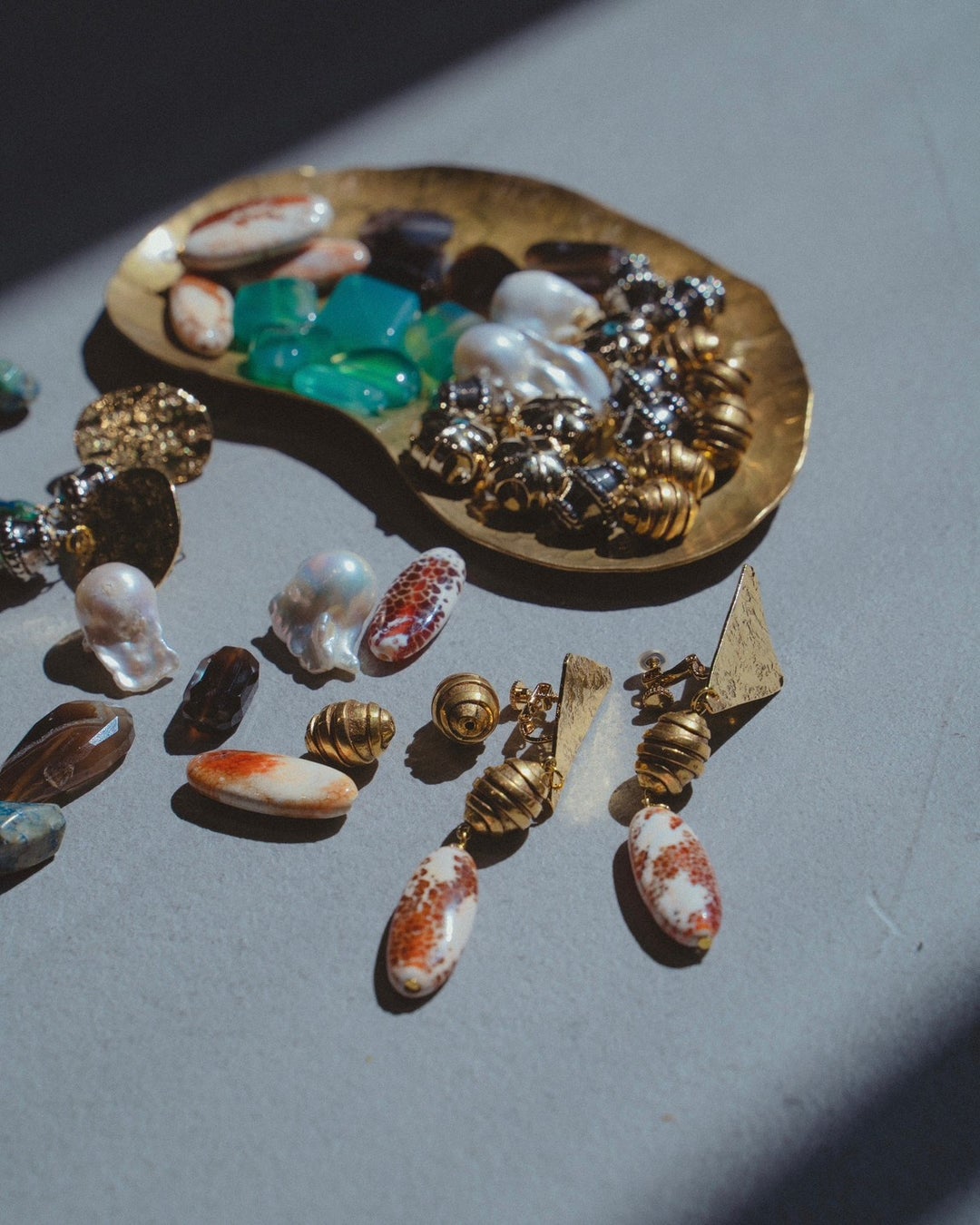 アデルデザイナー英里・リストリさんがアーセンスのためにセレクトしてくださったパーツは、女性人気の高い天然石やパールをはじめ、アーセンスの洋服とマッチするエキゾチックな雰囲気のアフリカンチャームなど種類豊富に並びます。お客様ご自身の好みと気分でオーダー頂けます。