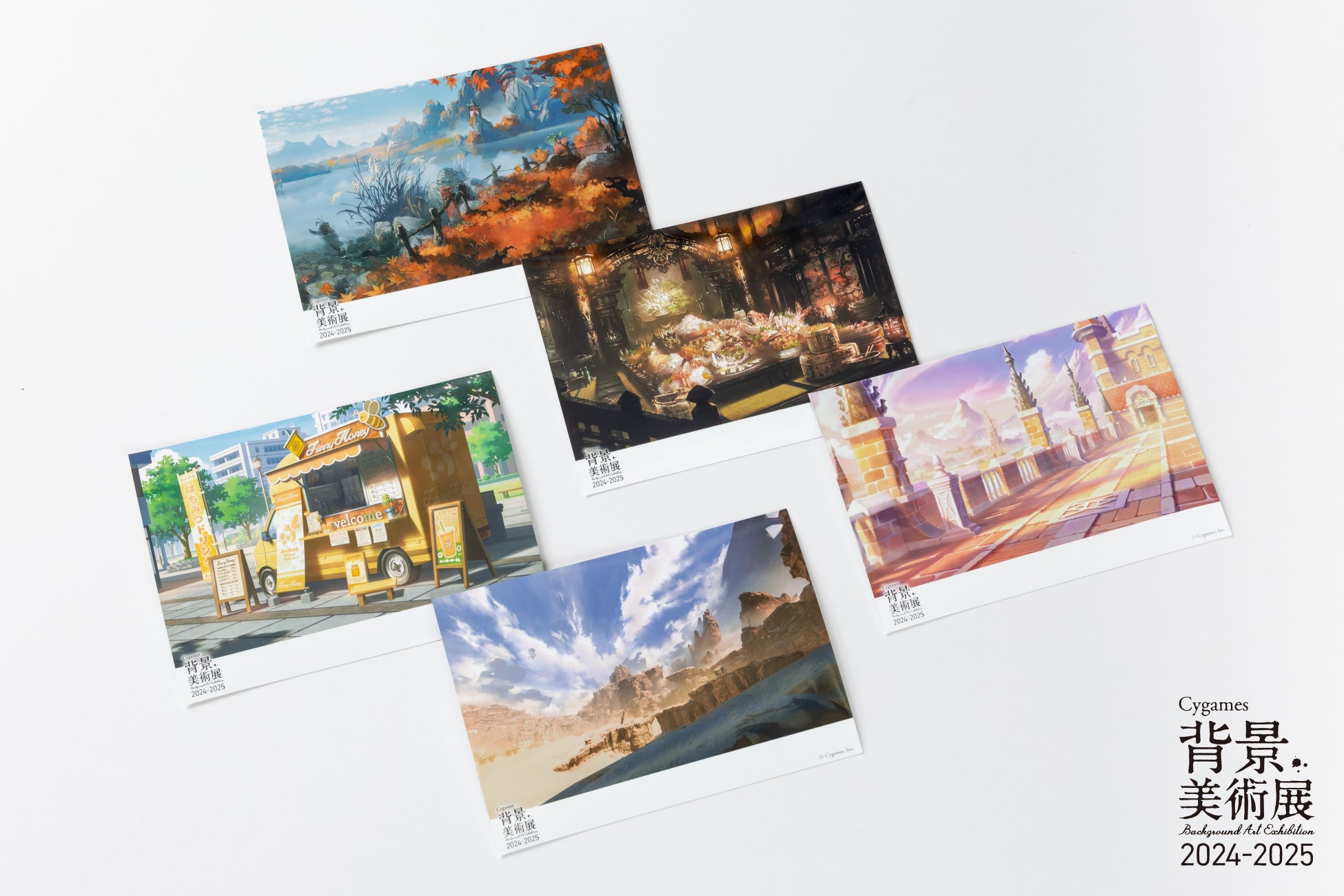今回は、サイゲームスのゲームに登場する背景イラストを集めた展覧会「Cygames背景美術展 2024-2025」の公式ブロマイドの第4弾を販売いたします。ラインナップは展示作品の一部背景アートから全5種類、L判と2L判、2つのサイズを展開、お好きなサイズをお選びいただきご購入いただけます。