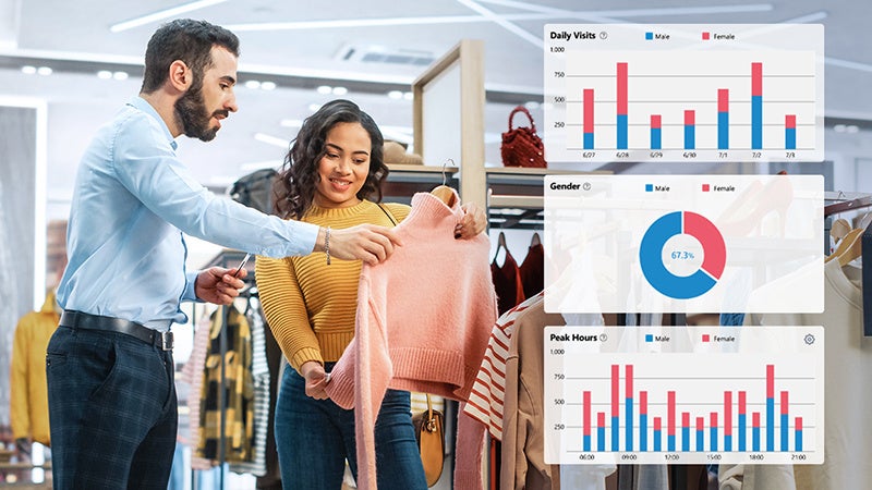 この機能は、店舗のIPカメラを使用して、来店者数や時間帯、また属性を集計し可視化することで、商業施設や小売店などにおけるマーケティング施策の立案、適切なスタッフ配置の実現など、店舗運営全般の最適化を支援します。これらデータは、カメラ単位や日付によるフィルタリングにも対応しており、より深い分析を行うことも可能です。