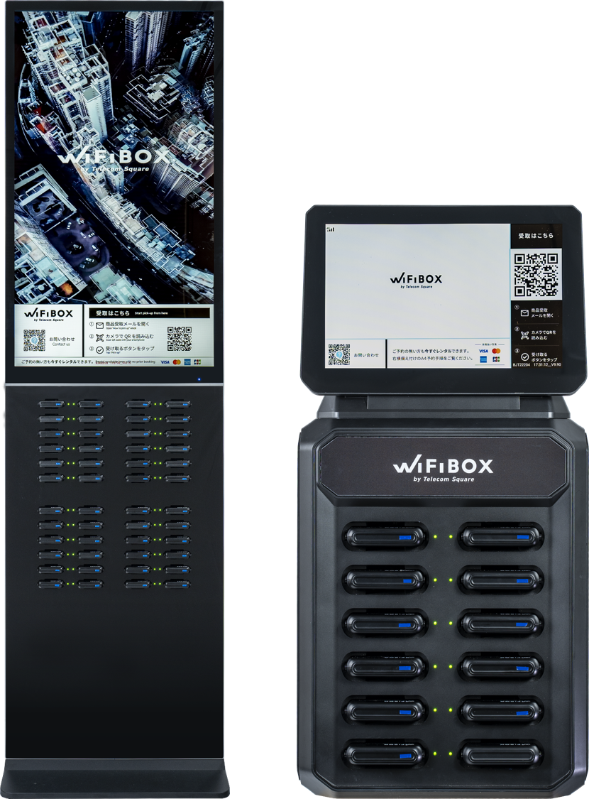 「WiFiBOX」は、当社が2022年4月1日よりリリースした海外Wi-Fiレンタルの新サービスです。圧倒的な業界最安値の300円(税込価格)からレンタルができる上に、日本国内はもちろん、業界最多の世界約130の国と地域で無制限プランの提供を実現した、世界で初となる無人で受取・返却が可能なモバイルWi-Fiルーターの自動レンタルサービスです。端末には充電用ケーブルが格納され、モバイルバッテリーとWi-Fi機能が一体となることで、余計な荷物を必要としない利便性を追求しています。