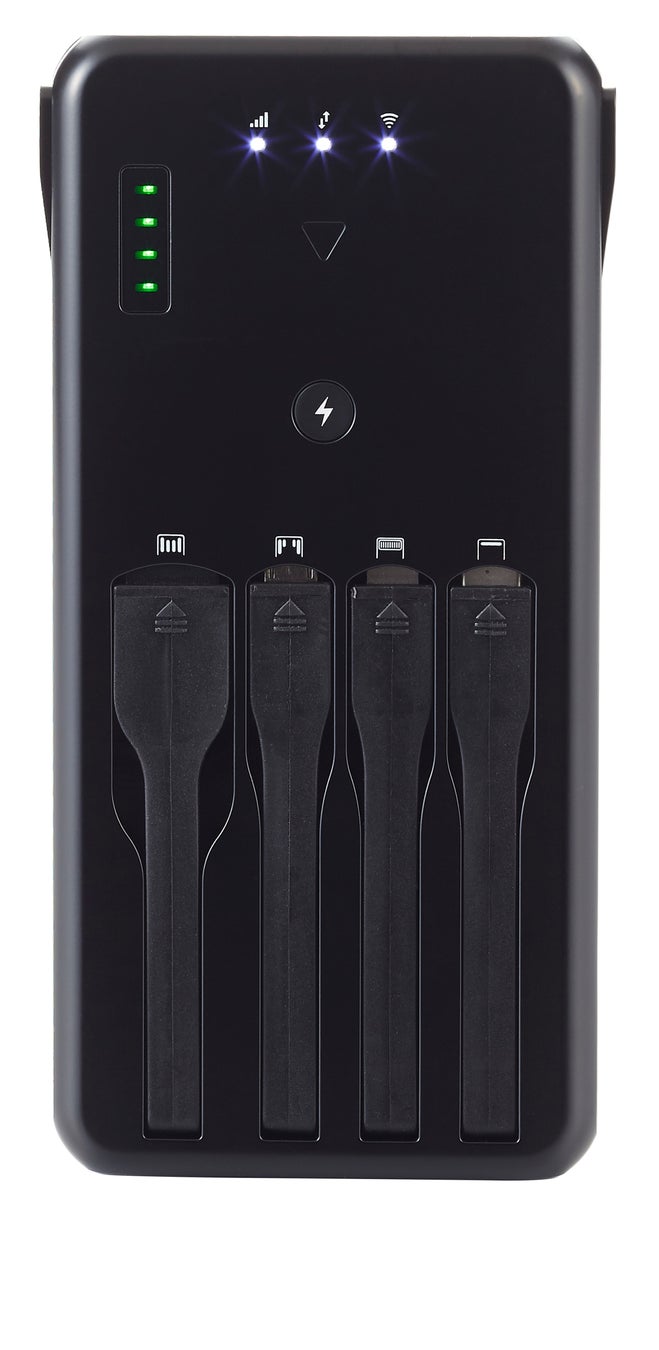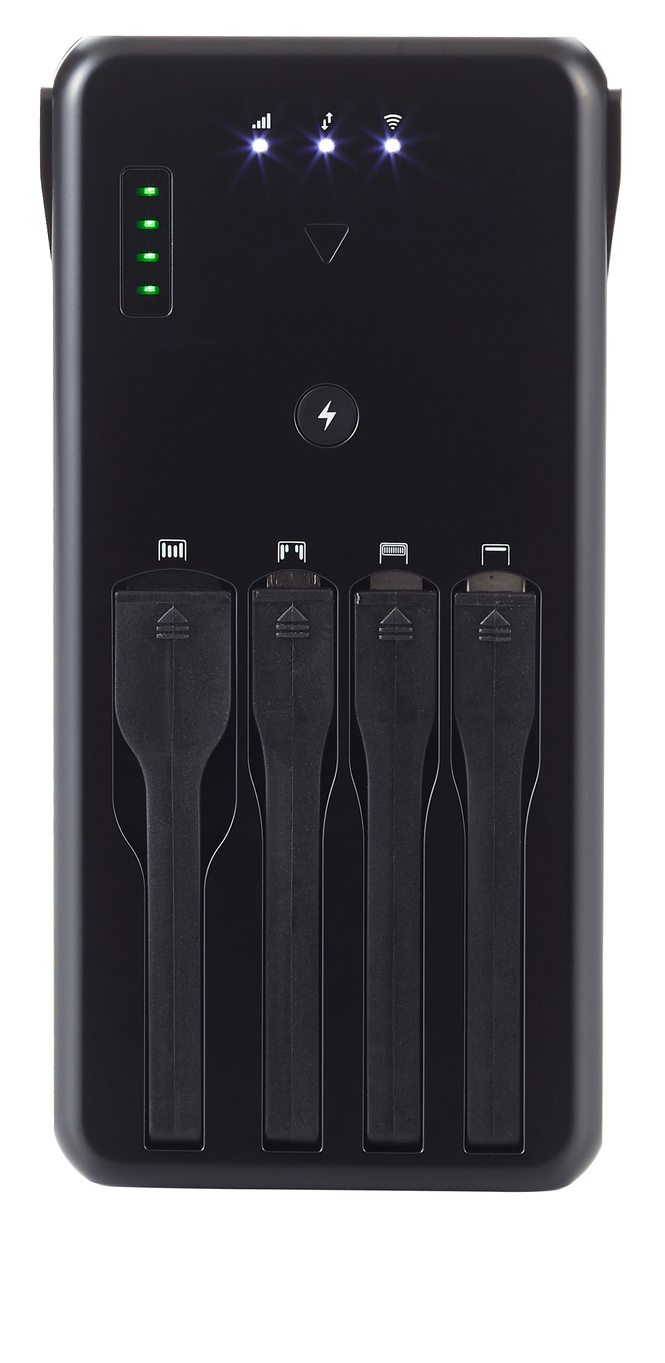 本体充電用のUSBケーブルに加え、スマホなどの充電に対応した3タイプのケーブルを内蔵し、モバイルバッテリーとしてもご利用できます。荷物になる専用ポーチや充電器などは付属しません。