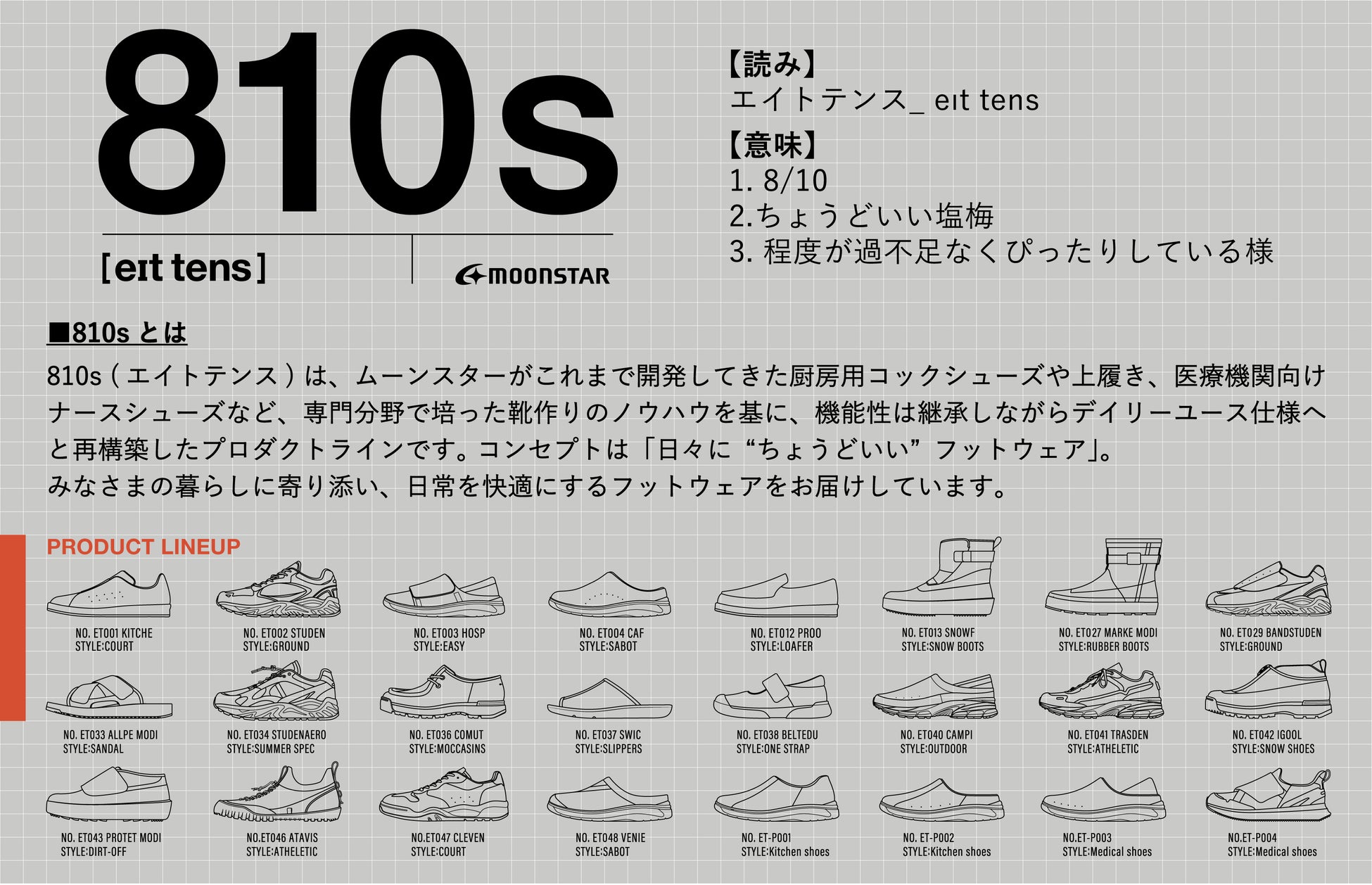 株式会社ムーンスター(本社:福岡県久留米市/東京オフィス:東京都中央区八丁堀/代表取締役社長:井田 祥一)は、「810s(エイトテンス)」の2025年春夏シーズンの新製品を2025年3月21日(金)から発売します。
