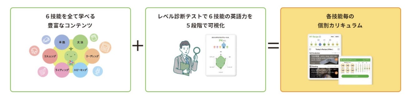 『レシピー for School』は、一人ひとりのレベルに合ったカリキュラムや、アプリを使った簡単で効率的な学習方法で英語学習をサポートします。