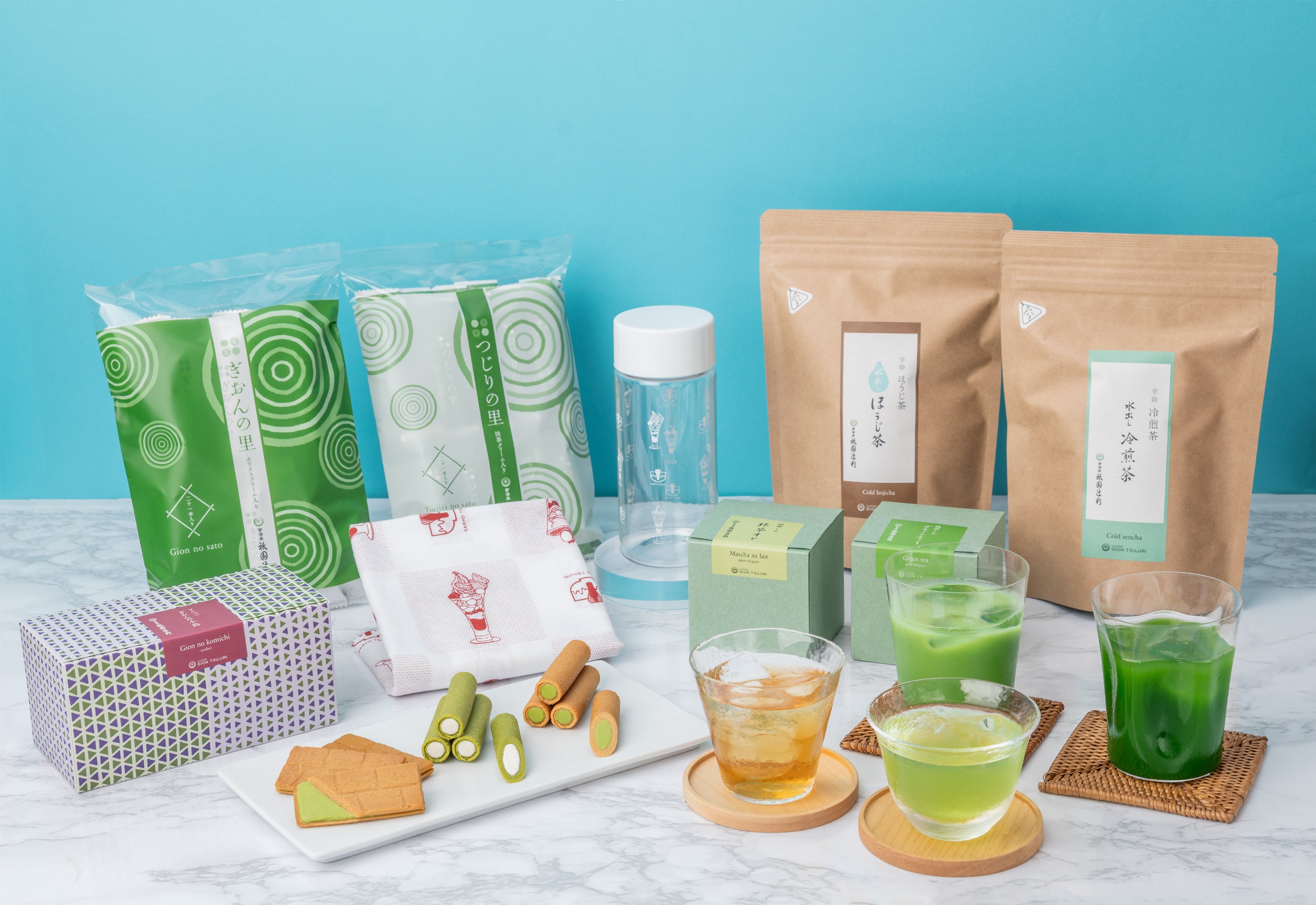 短時間ながら茶葉の味わいがしっかりと感じられ、この時期の健やかに過ごすために常備しておきたい水出しの「冷煎茶」と「水出しほうじ茶」をはじめ、定番のお菓子まで全9品を詰め合わせました。