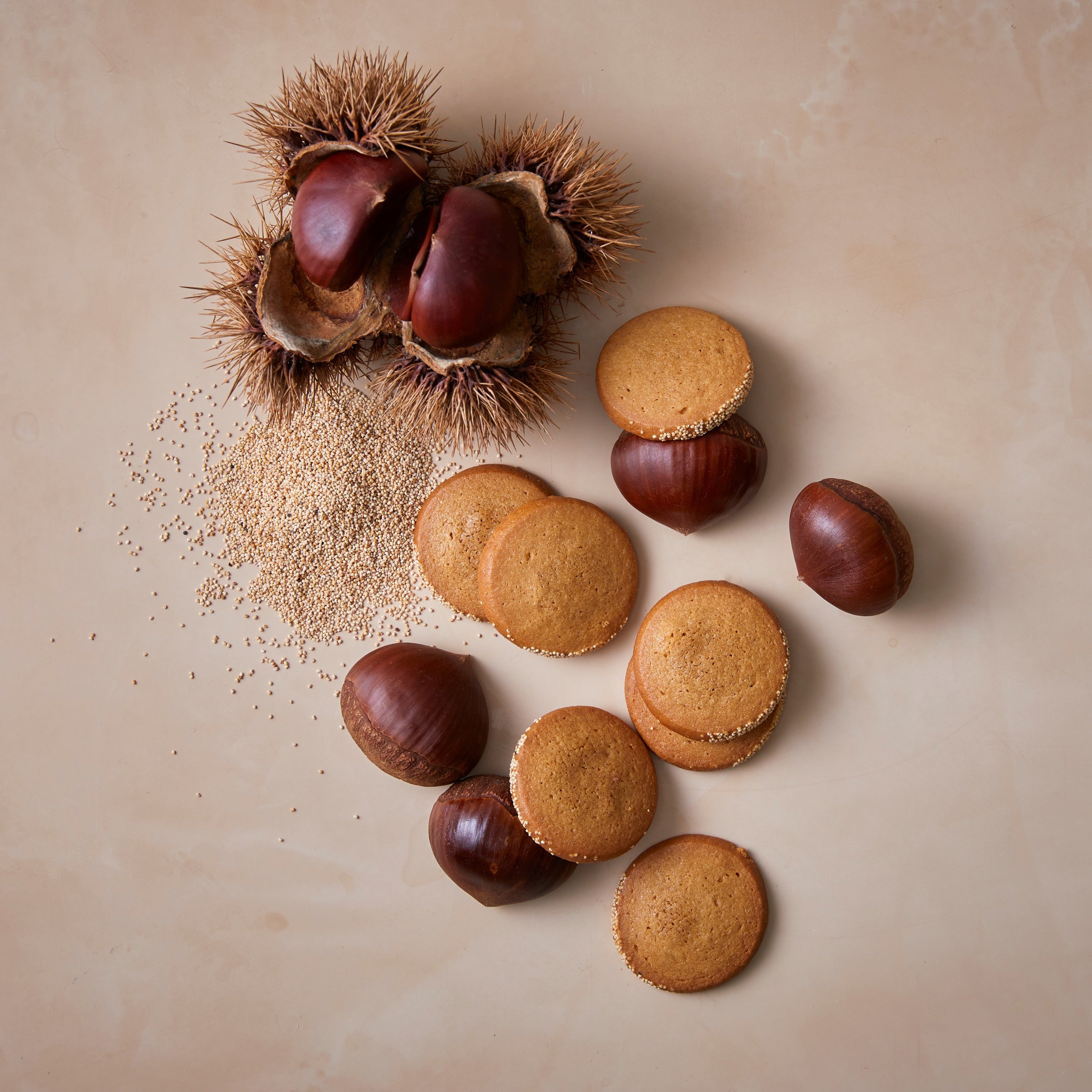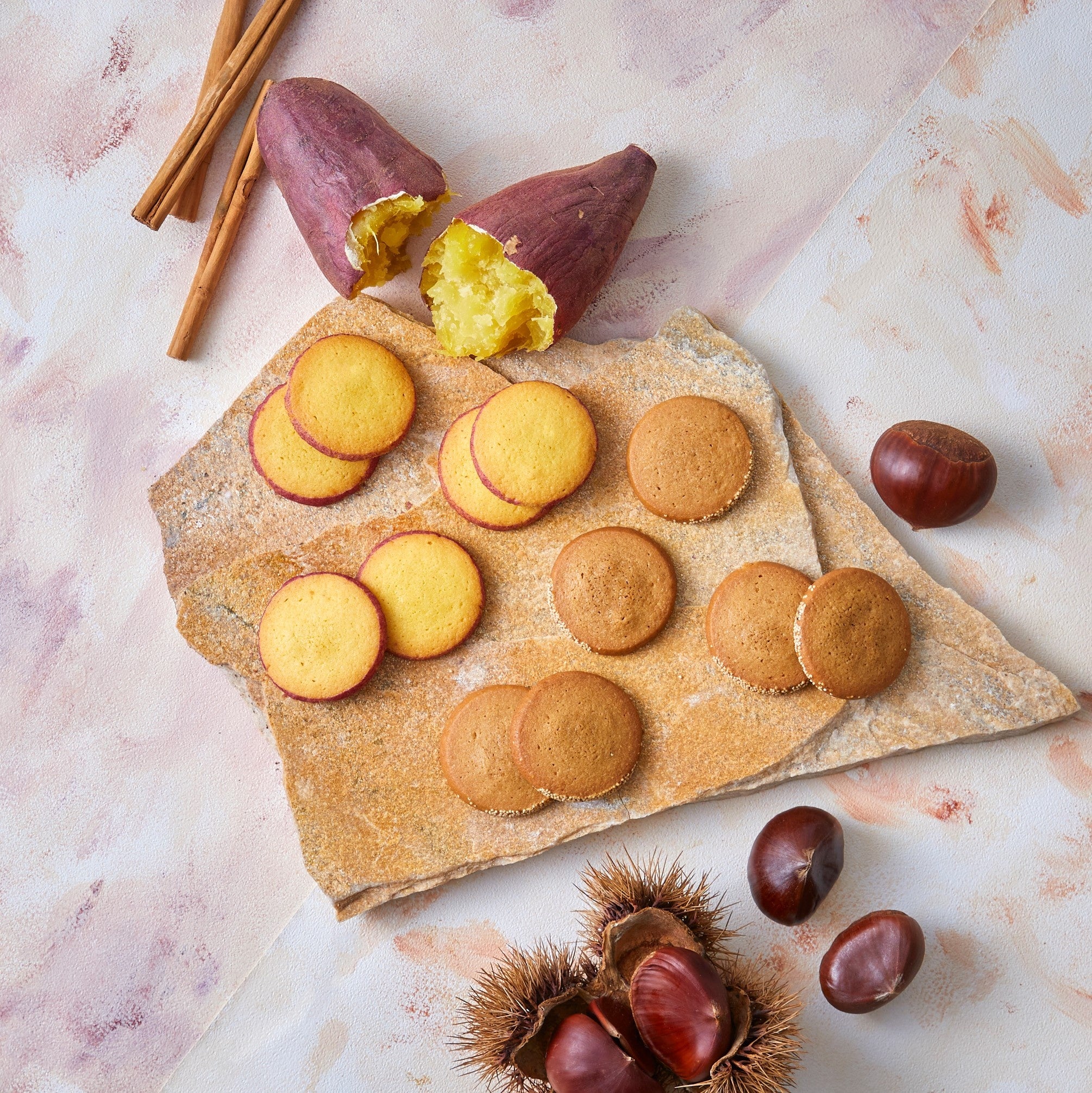「カドー ドゥ ロートンヌ」のサブレ2種をセットにしてお渡しします。ぜひ新宿御苑前店、下北沢店にも訪れてヨックモックの秋の味覚をお楽しみください。