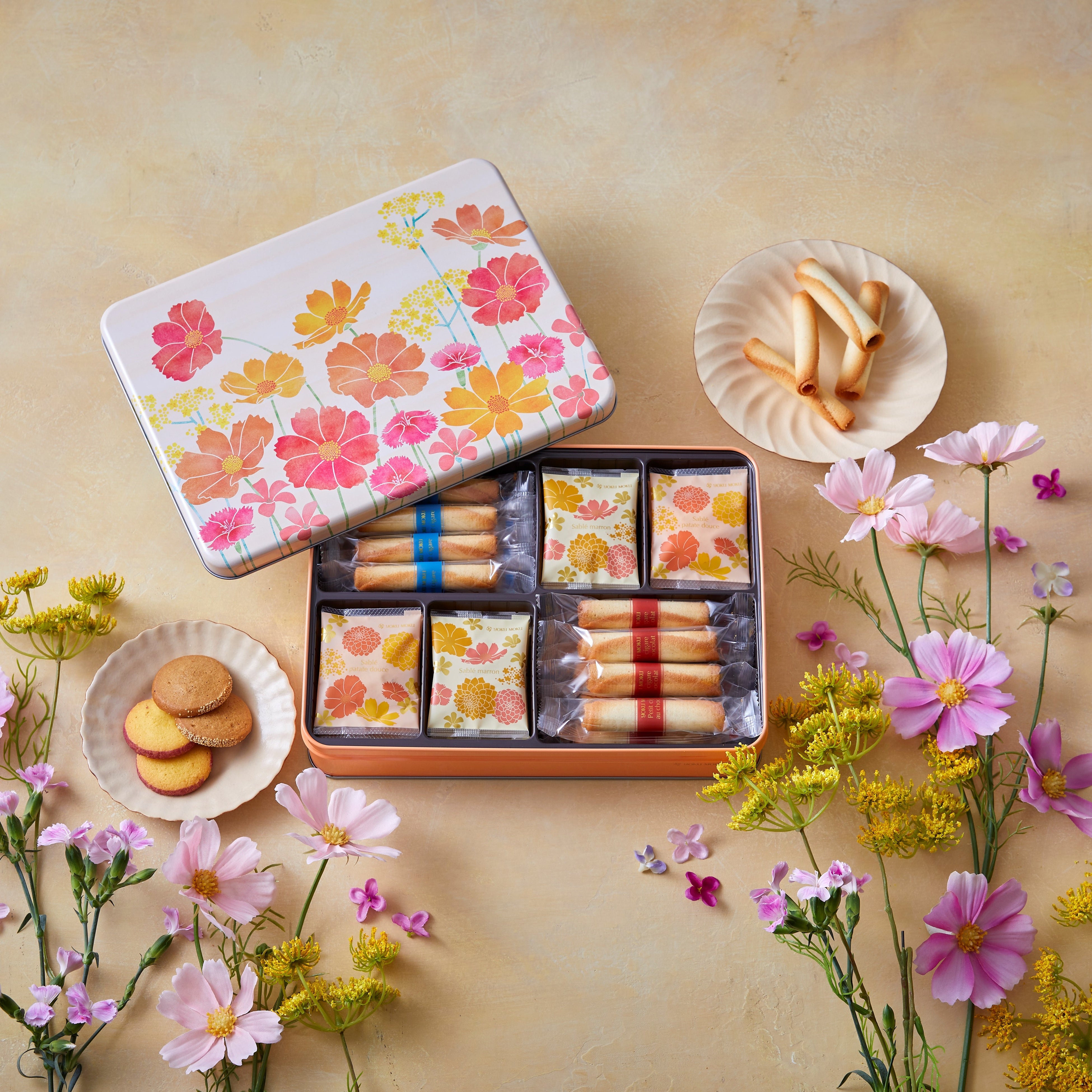 ご参加いただく皆様にはヨックモックでも人気の高い店舗限定商品をお土産としてお渡しします。9月6日(水)、9月10日(日)、9月20日(水)、9月24日(日)にご参加いただく皆様には青山本店限定「サンク ビジュー」、9月9日(土)9月30日(土)にご参加いただく皆様には三越本店・伊勢丹新宿店限定「フルール・フルール」をお渡しします。どちらの商品もパッケージやお菓子にブランドシンボルであるハナミズキが表現されています。ご自宅でもヨックモックのお菓子をお楽しみください。