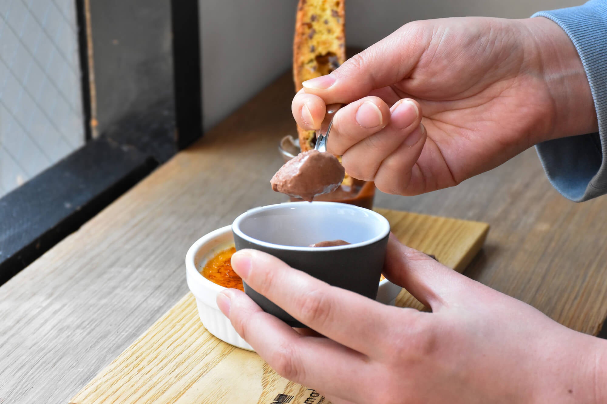 滑らかなブリュレに、奥深いチョコレートの風味をプラス。