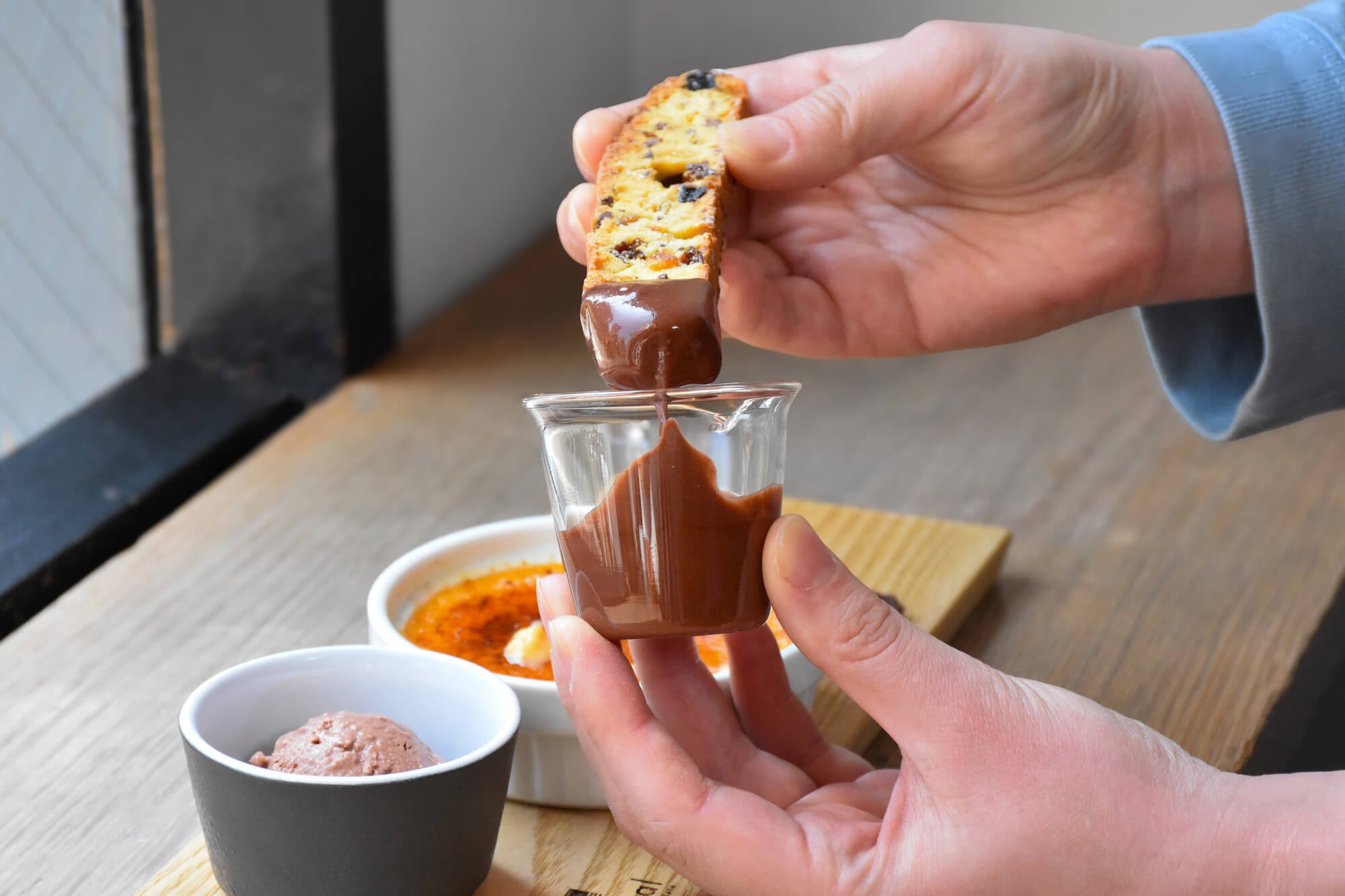 クレームブリュレにかけたり、ビスコッティをディップしたり、さらにアイスにかけるなどお好みでお楽しみください。