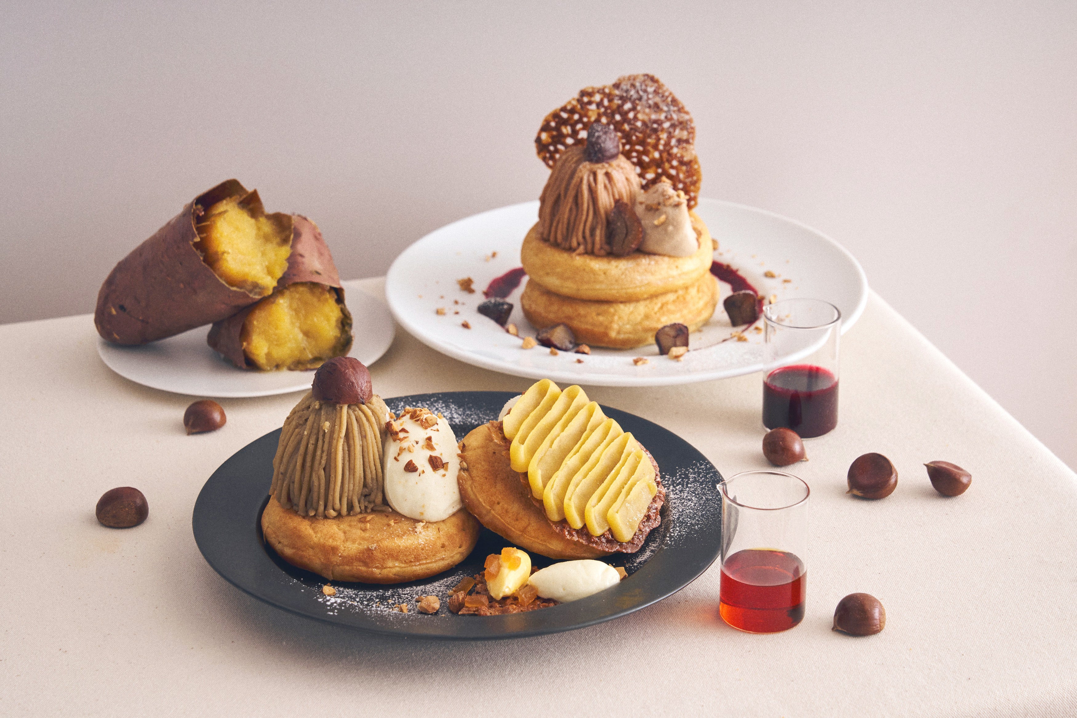 一皿で和栗モンブランと安納芋モンブランを楽しみ尽くせるスペシャルな秋の味覚パンケーキが新登場。その他にも、安納芋タルト、和栗×カシスや洋栗×ラム酒といった栗との相性の良いケーキなど、秋ならではの多彩なデザートがラインナップ。素材の組み合わせが引き出す、旬の味わいをご堪能ください。
