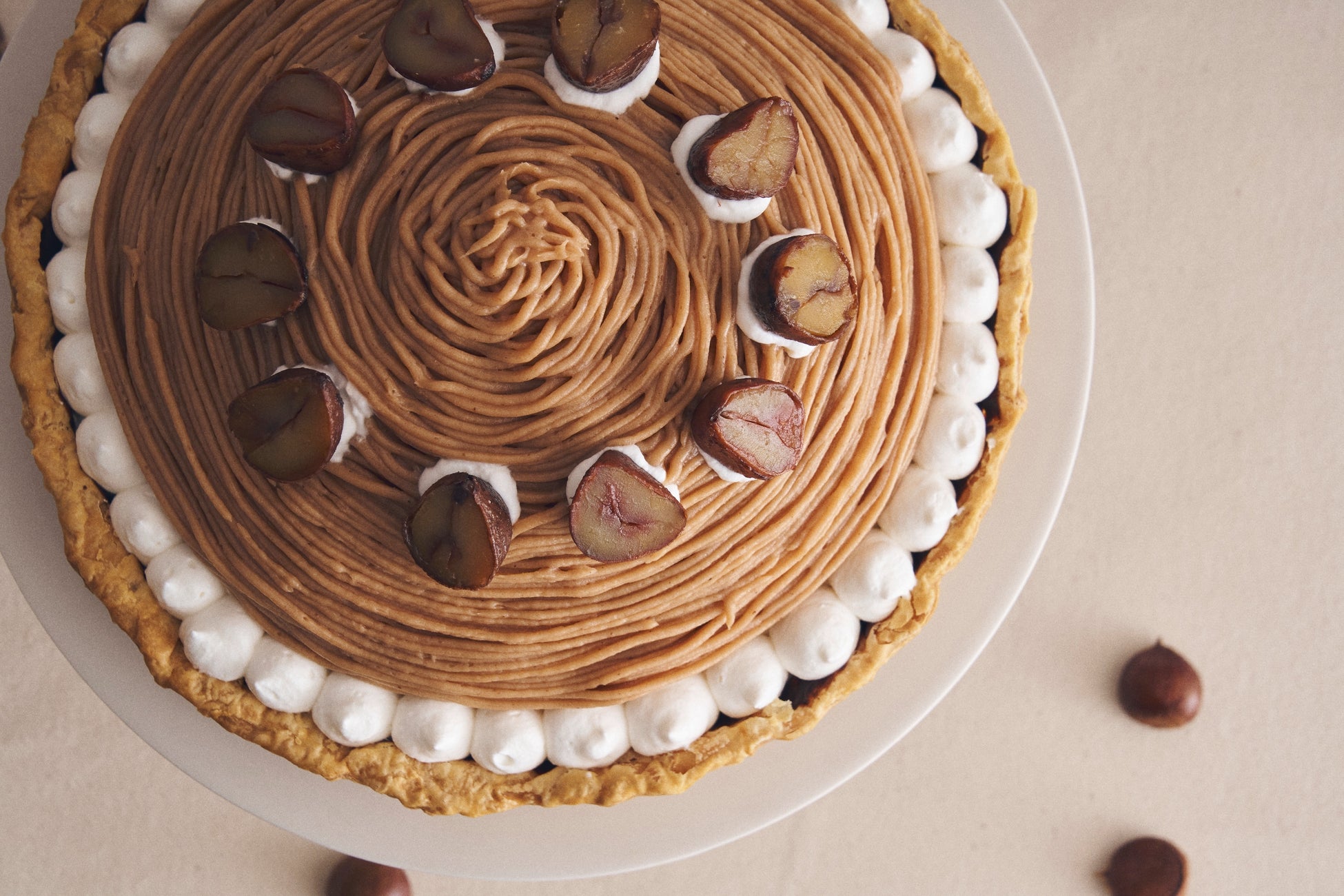 フランス産の洋栗を贅沢に使用したマロンクリームに、ほんのりラム酒を効かせた甘さ控えめの生クリームが相性抜群!栗本来のやさしい甘さに、どこか懐かしさを感じられるモンブランパイに仕上げました。