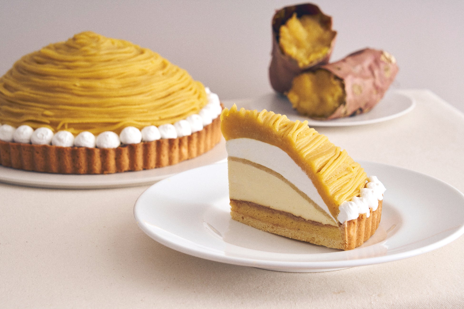 茨城県産“和栗”にクリーミーなマスカルポーネチーズと沖縄県産きび砂糖を合わせることで、ほっくり上品な和栗の味わいが際立ちます。まるで蜜がかかっているかのような、濃厚な甘さの五島市産“蜜芋”にはアクセントに塩発酵バターをプラスして。キャラメルソースをかけて味の変化をお楽しみください。