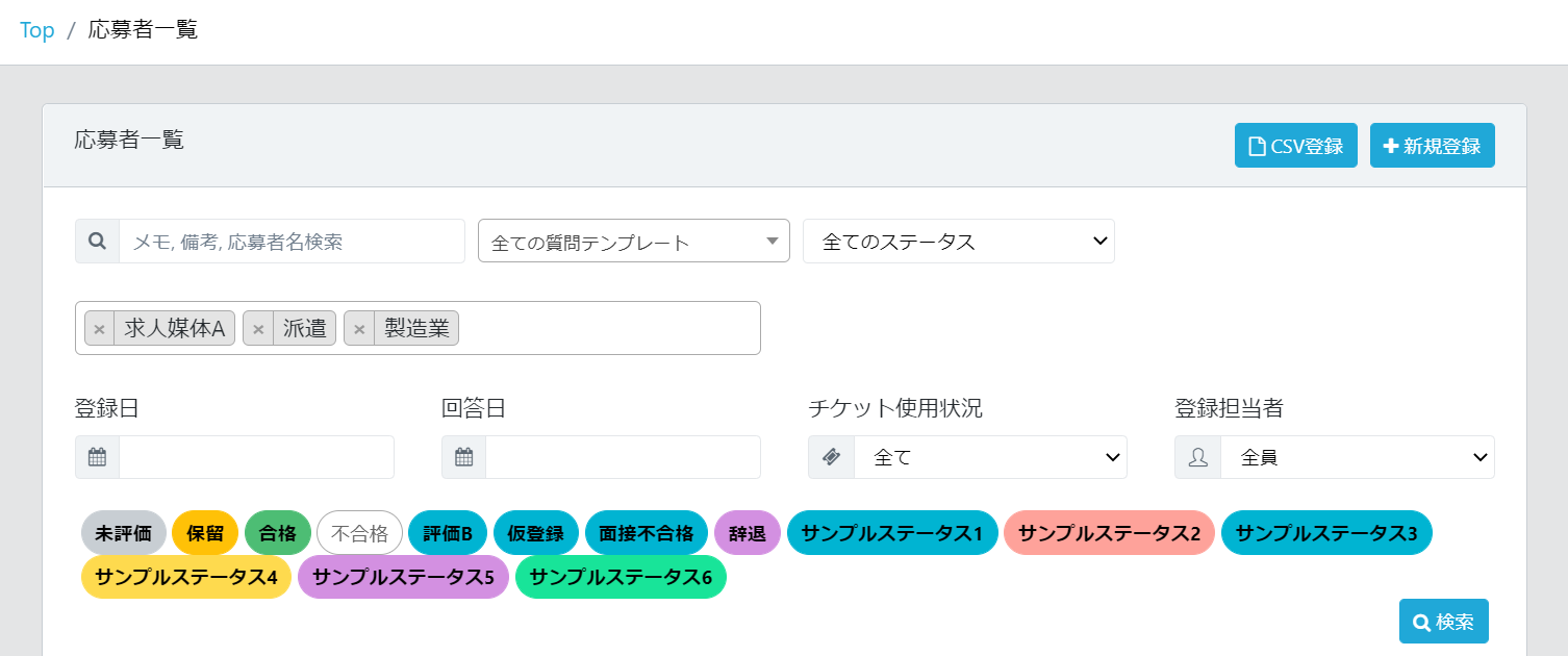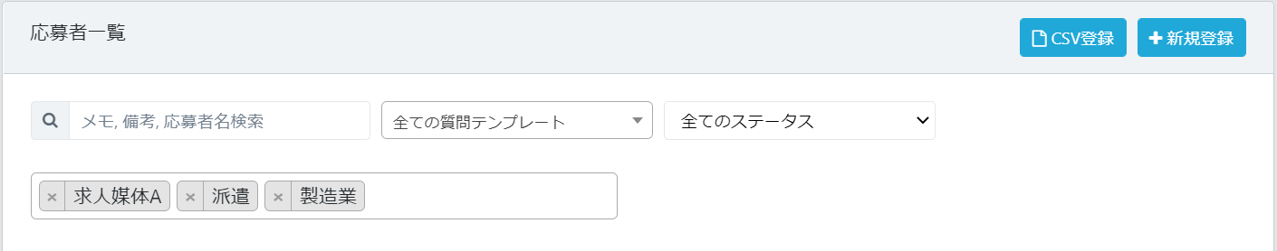 ※タグ複数検索のイメージ:下記画像では求人媒体A、派遣、製造業の3つのタグで検索