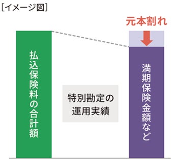 ・ 特別勘定の運用実績により、次の金額*が払 込んだ「払込保険料の合計額」を下回り、損失が生じるおそれがあります。このリスクは契約者が負います。