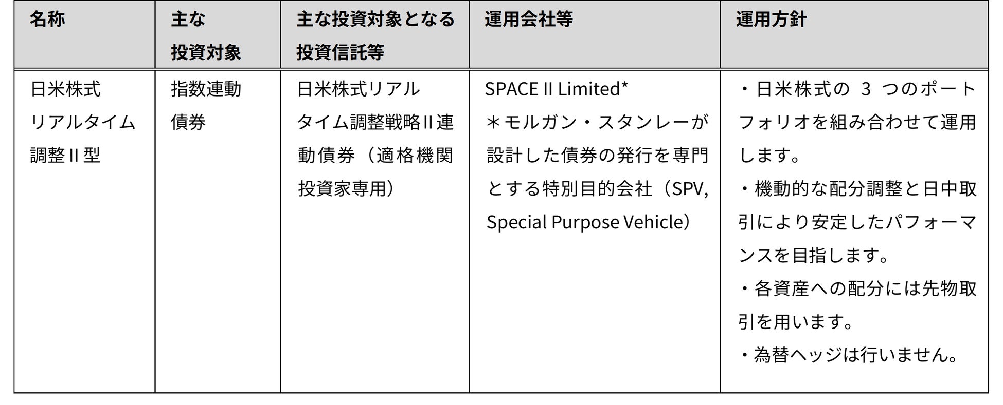 現行の特別勘定(9種類)に加えて、新たに「日米株式リアルタイム調整Ⅱ型※1※2」を追加します。