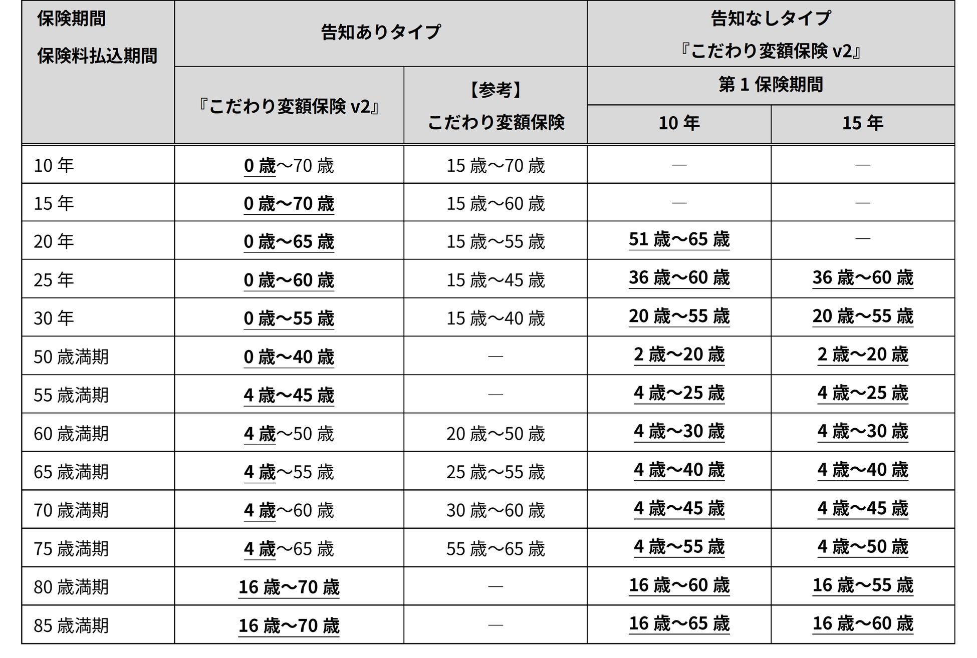 ※下線部分は当該商品で拡大、または追加された契約年齢範囲です。