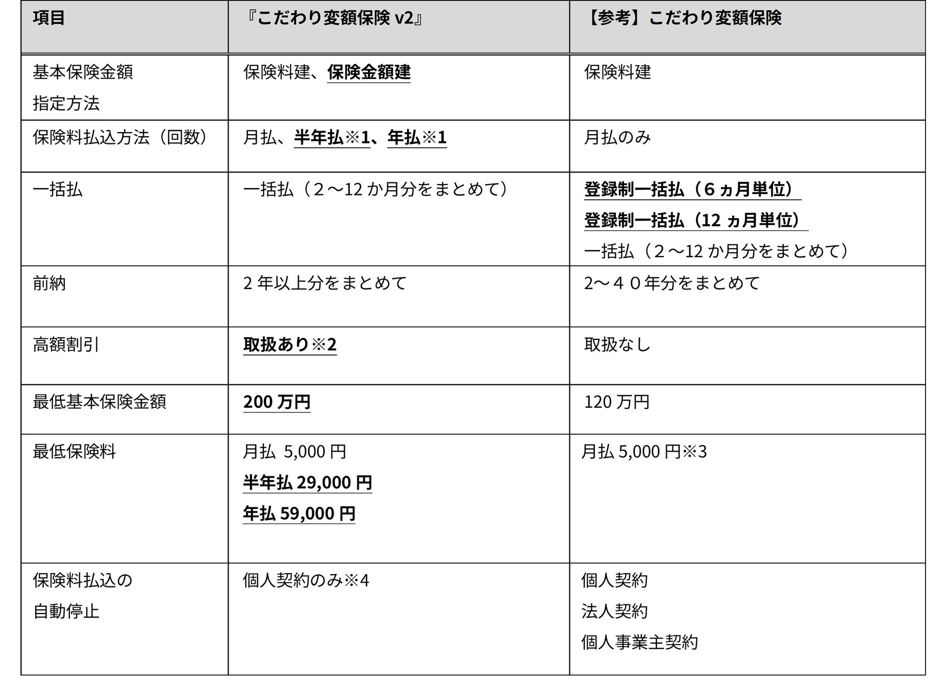 このたび当社は、2025年11月1日(土)より新商品、変額保険Ⅰ型(有期型)『こだわり変額保険v2』の販売を開始します。本商品は、保障機能と資産形成機能を両立する円建ての変額保険で、お客さまのライフスタイルに合わせた柔軟な設計を可能とするため、従来の「こだわり変額保険」にはなかった革新的な機能を新たに追加しています。具体的には、「告知ありタイプ」の万が一の際の保障を充実させると同時に「告知なしタイプ」を新たに選択できる設計とし、お客さまが必要な時に必要な保障を確保できる設計としています。