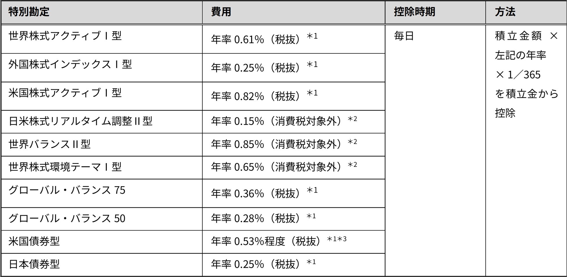 *2 特別勘定の投資対象となる指数連動債券の純資産総額に対してかかる費用(管理費用)