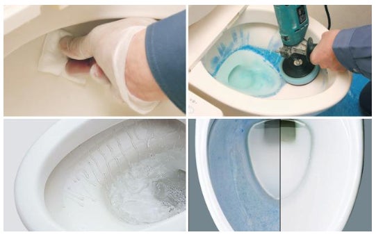 便器も新品同様にできるメニューをご用意しています。LIXILが独自に開発したクリーニング方法と加工の「プロガード」。なかなか取れないトイレの黄ばみや黒ずみを除去するだけでなく、水アカがつきやすい便器内側などの陶器表面を改質し、約5年間以上も水アカを寄せつけません。