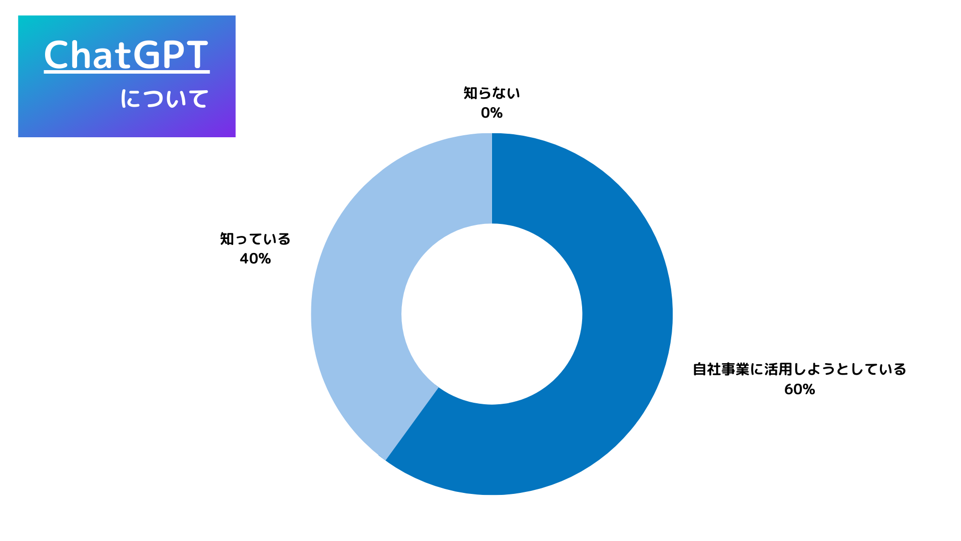 「ChatGPT」について聞くと、60%の回答者が「自社事業に活用している」と回答しました。