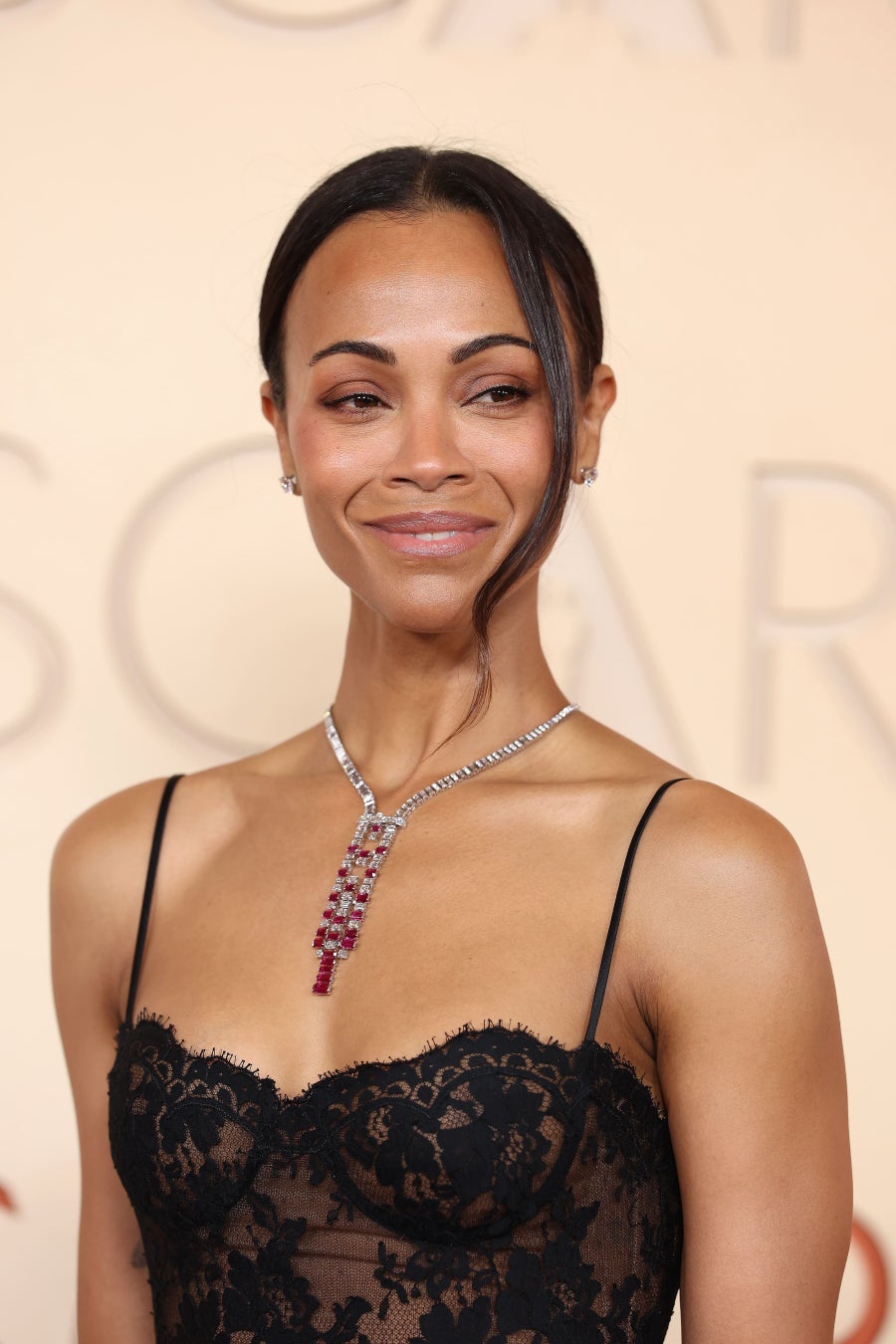 プレゼンターとして登場したゾーイ・サルダナは、最新ハイジュエリーコレクションの「アン エキリーブル」より、「ユーフォニア」ネックレスを着用。カルティエがこのネックレスに描き出すのは、ストーン同士が織りなす稀有なハーモニー。エメラルドカットを施したルビーとダイヤモンドが、引き立て合うように連なります。このたぐい稀な組み合わせは、スクエアカット、バゲットカット、 ブリリアントカットのダイヤモンドによっていっそう輝きを増し、抽象的なデザインを形づくっています。透かし模様、幾何学模様、交互に並ぶストーンが織りなす構図は、力強いリズムとともに、煌めく生命力を放ちます。