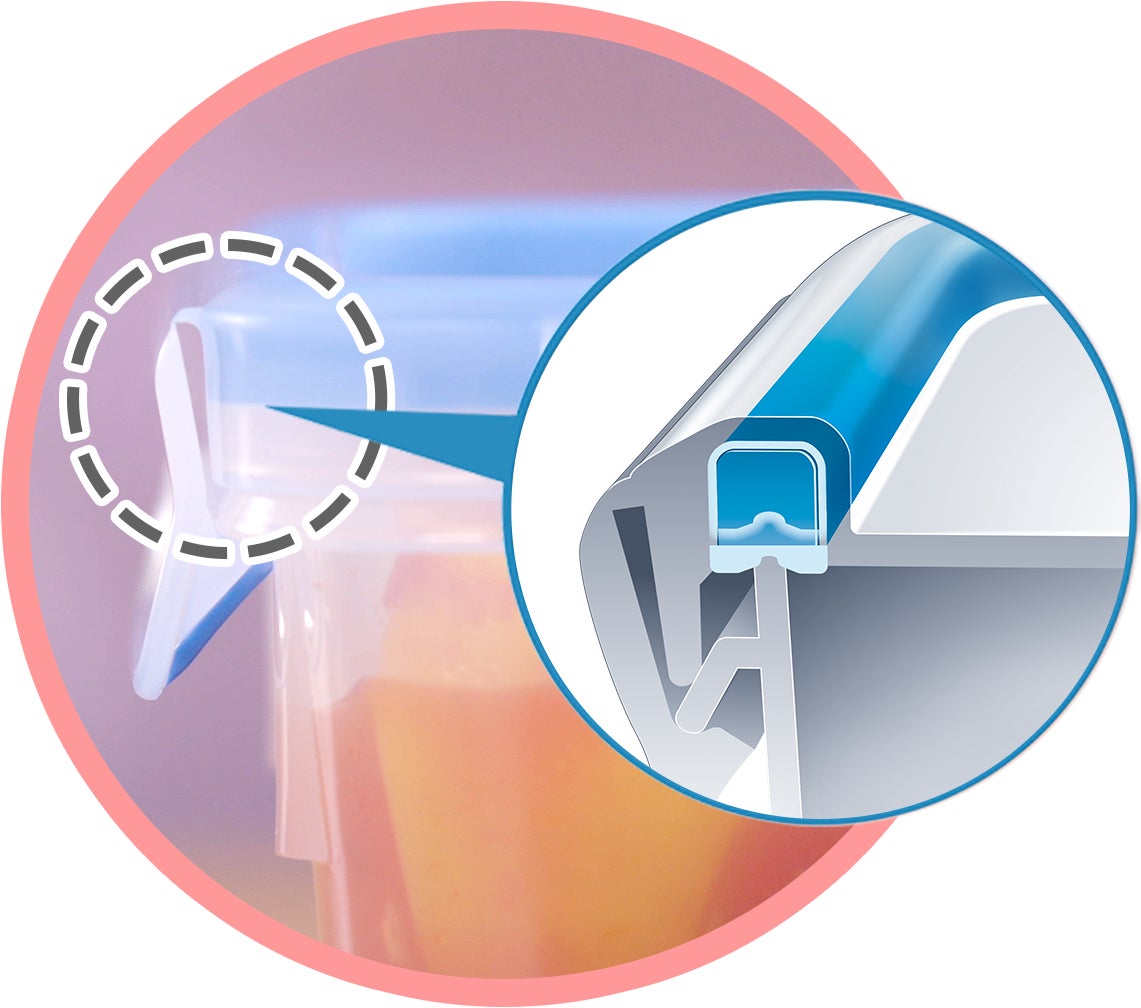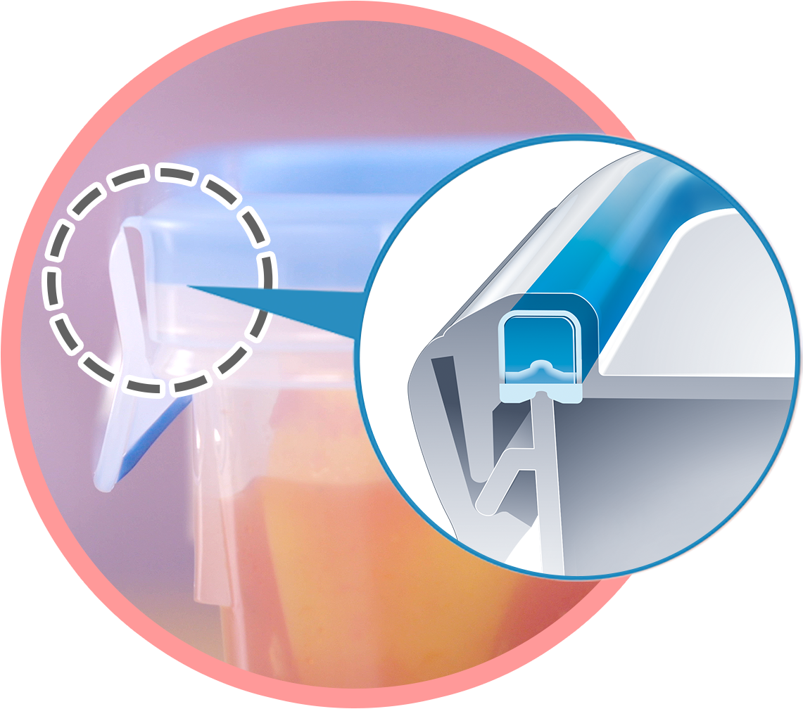 「マスターシール フレッシュ MW」の魅力は、その高い密閉性。パッキンとフタが一体構造となっており、優れた密閉性能で、スープや煮物などを入れてももれません。液体はもちろんニオイもしっかり閉じ込めておけるので、食品の保存や持ち歩きも安心です。また、高い密閉性により、野菜や果物をより新鮮に保つことができます。さらに、パッキンがフタに隙間なく密着しているため、雑菌が入らず清潔さをキープします。また、信頼のティファールロゴをフタに追加しています。有害物質BPA(※2)を含まない素材を採用し、安全性にもこだわっています。30年保証付き(※3)で長く安心してお使いいただけます。