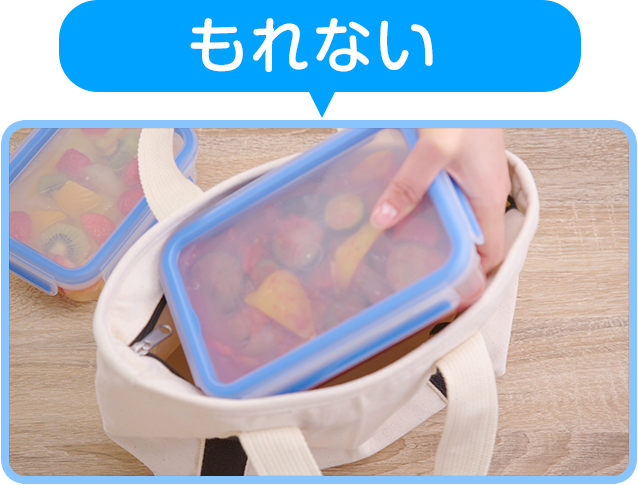 スープや煮物など、液体や汁気の多いお惣菜を入れてももれません。また、においの強い食材の保存にも、においもれを気にせず使えます。