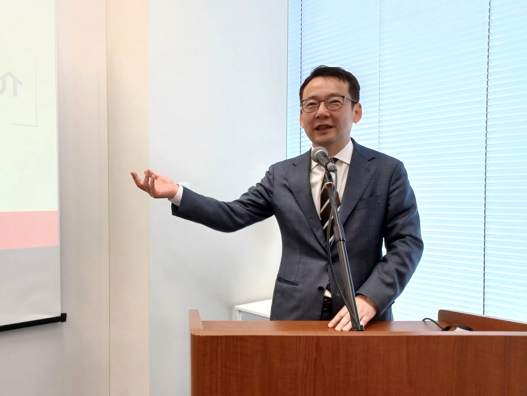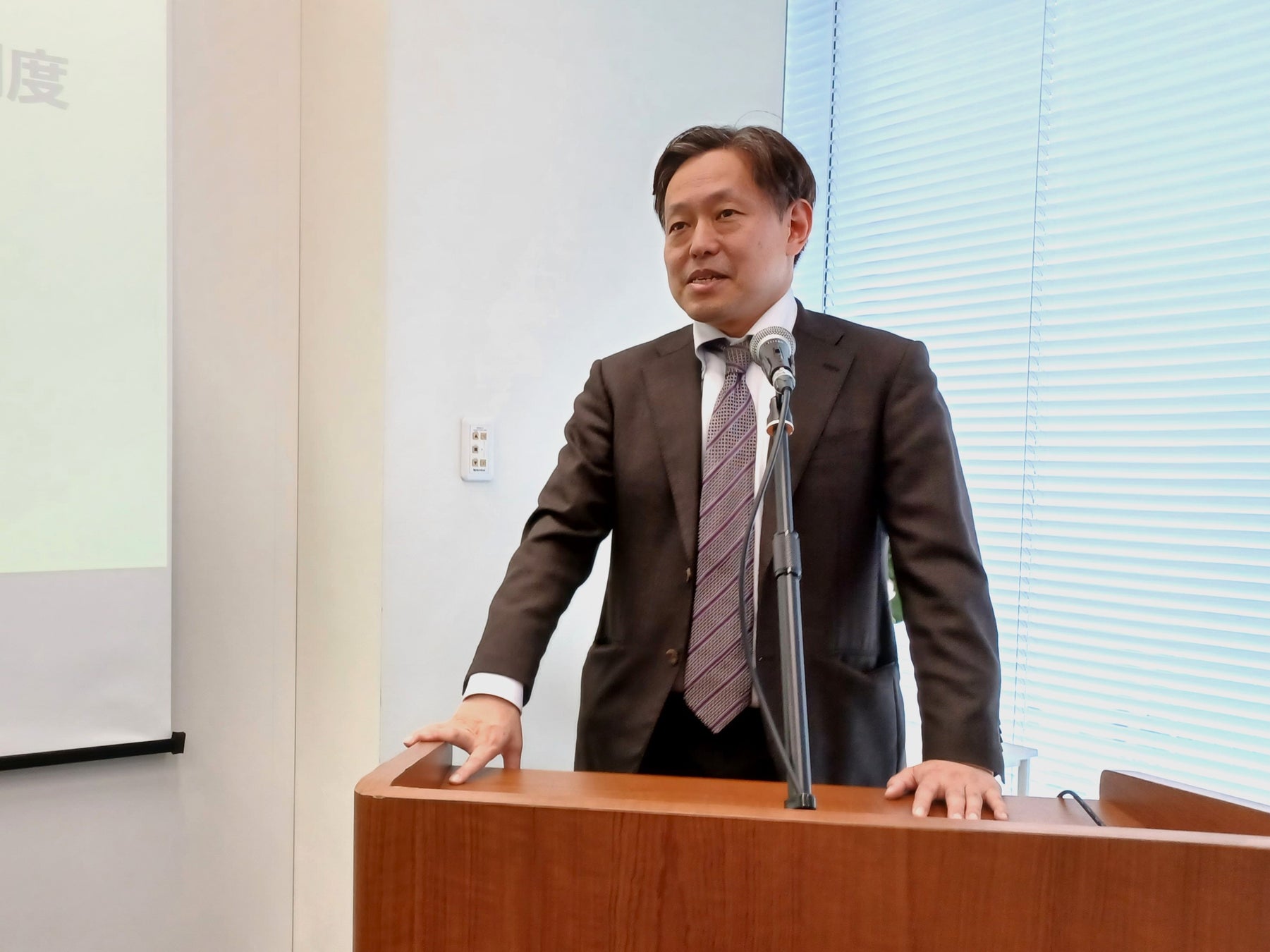 最後にバッファロー執行役員 富山強から、同制度に対する取り組みや適合商品の紹介、今後のビジネス展開についてお話しいたしました。