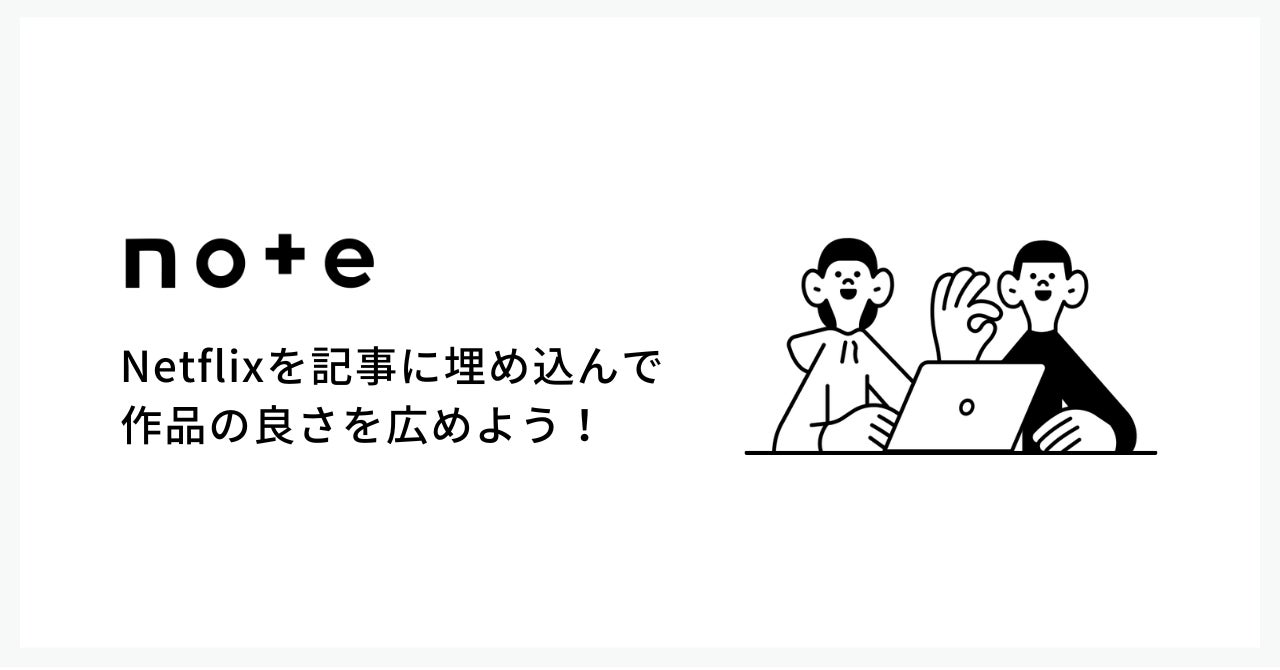 noteのエディタ(記事の編集画面)にNetflixの作品ページのURLを貼り付けるだけで、自動でその作品のサムネイルと紹介文が表示されます。