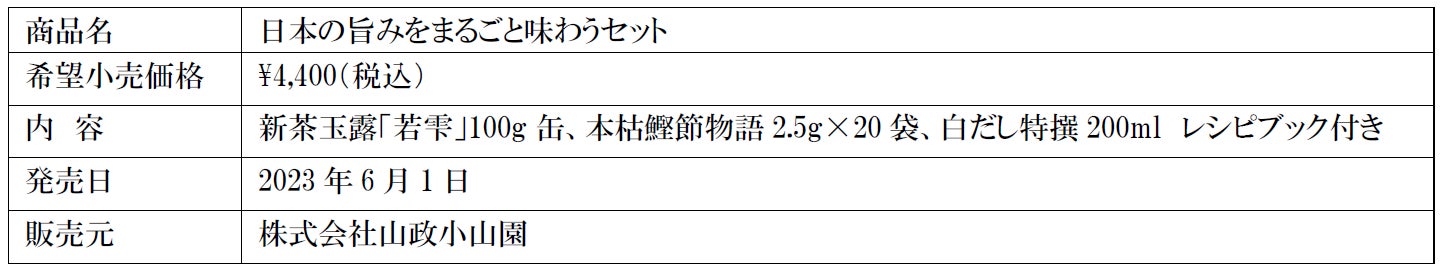 本枯鰹節と新茶玉露の旨みを楽しみ、「だしがら」「茶がら」に新たな価値を! 山政小山園とのコラボレーション「日本の旨みをまるごと味わうセット」6月1日新発売