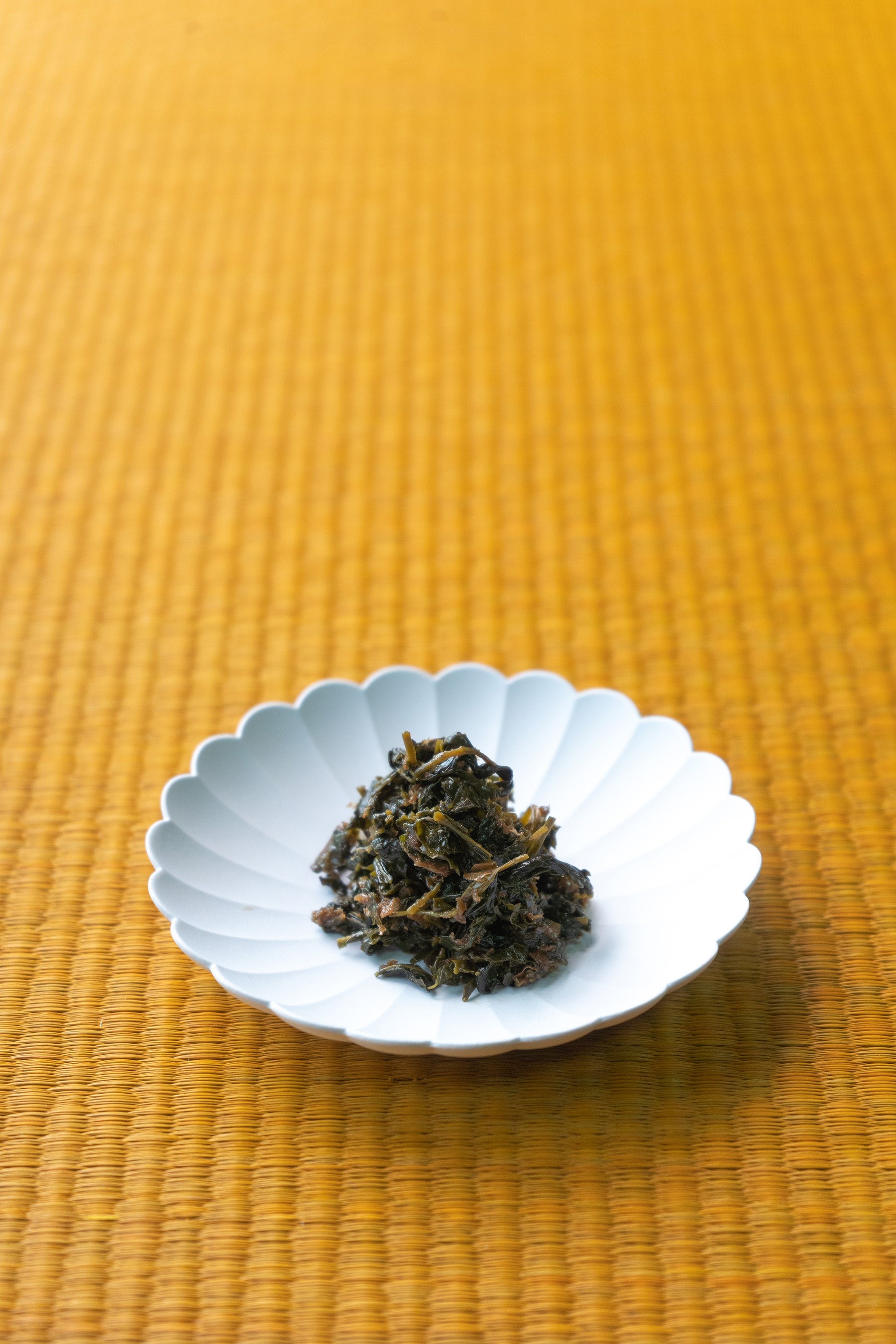 茶がらをそのまま白だしをかけて召し上がっていただく、「玉露のおひたし」は、柔らかな茶葉の爽やかな香りと旨みをそのまま味わっていただけます。「玉露と鰹節の佃煮」は、茶がらとだしがらに、白だしと醤油やみりんを加えて煮詰めるだけ。玉露の瑞々しさとかつおの旨みが楽しめます。茶がらとかつお節のだしがらに、白だし特撰を絡めて炒るだけの、「玉露と鰹のふりかけ」は、かつおの旨みと香ばしさの後に、お茶の香りが口に広がります。おうち時間をちょっと贅沢に、ひと手間を楽しむご提案となっています。(写真左から、おひたし・佃煮・ふりかけ)