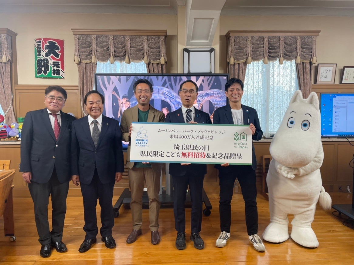 県民の日の協賛行事として、ムーミンバレーパークへのお子さまの無料招待と、先着順で記念品贈呈を埼玉県知事にご報告いたしました。