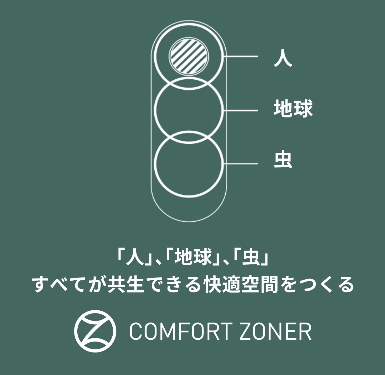 アウトドア好きなお客様の声「アウトドアで大切な家族や仲間を虫から守りたい。」「自然には虫がいて当たり前。虫のいる場所に自分たちがお邪魔している。」に着目して、虫を気にすることなくアウトドアをお楽しみいただける虫ケア用品の開発をスタートしました。当社が培った害虫の生態研究や、アースノーマットなどの薬剤揮散技術を応用して誕生した手のひらサイズの虫ケアデバイスが、『コンフォートゾナー(COMFORT ZONER)』です。
