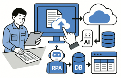 RPA・AI・ノーコードDBを統合し、現場スタッフが自ら業務改善を進められる仕組みを実現します。
