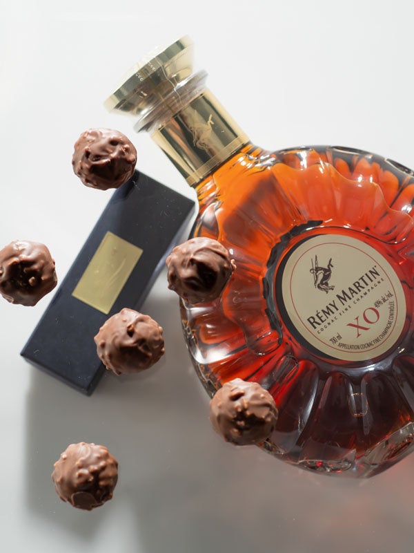 ミルクチョコレートに最上級のコニャックとして知られる「レミーマルタンXO」をあわせ、アーモンドの香りと食感でアクセントをつけた大人のトリュフ。
