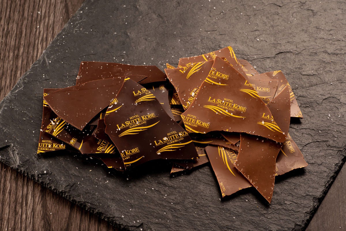 上品なカカオの香りが特徴のフランス産のチョコレートに、淡路島の釜炊き塩「自凝雫塩(おのころしずくしお)」を散りばめました。チョコレートと塩味がマッチした逸品です。苦味のあるダークとまろやかなミルクの2種類をご用意しました。