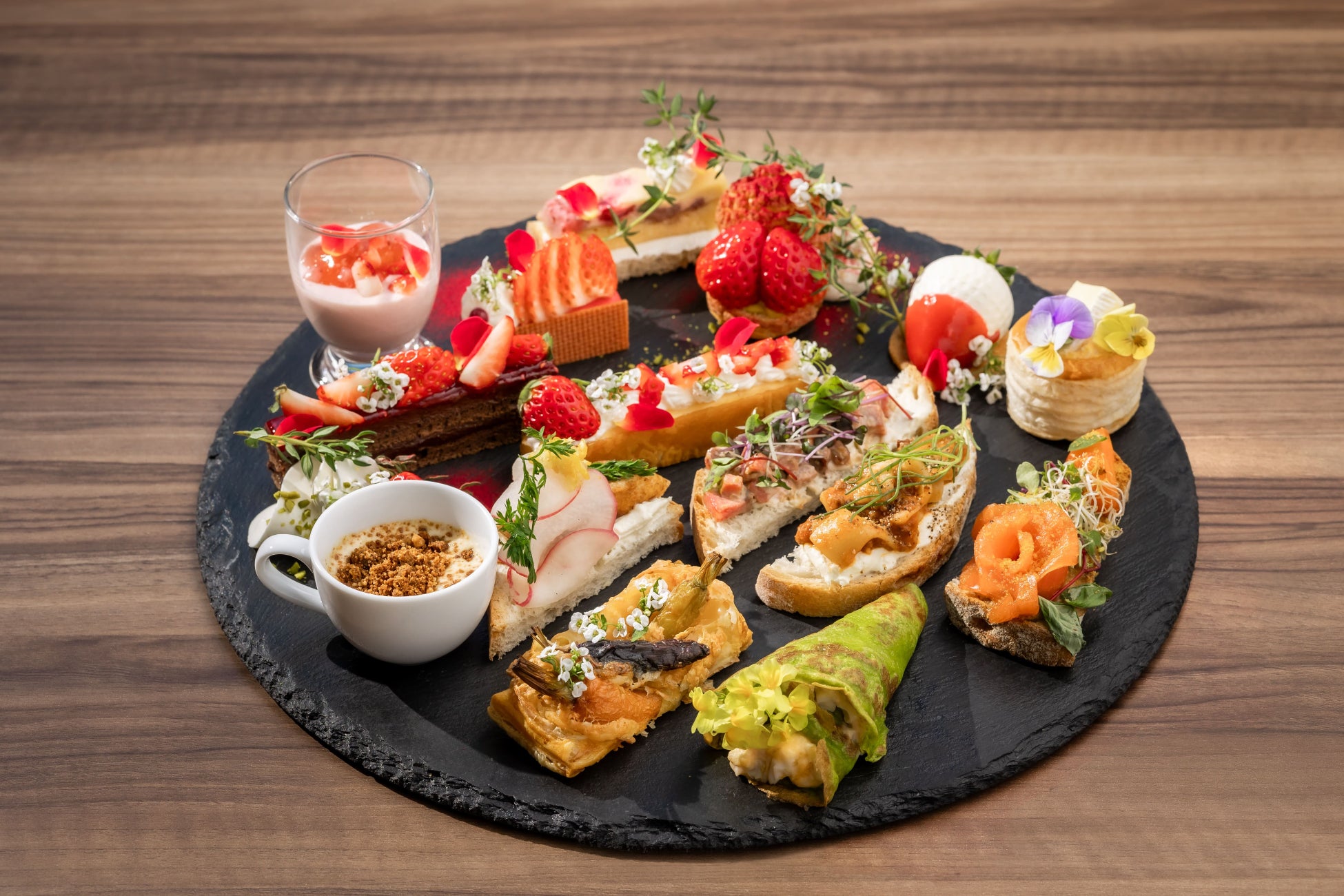 苺の甘酸っぱさと、クリームやチョコレート、焼き菓子との組み合わせで、軽やかな余韻を演出します。