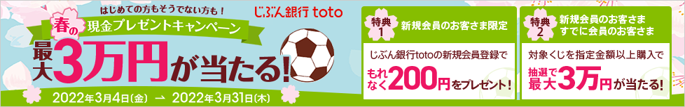 はじめての方もそうでない方も!じぶん銀行toto 春の現金プレゼントキャンペーンを実施