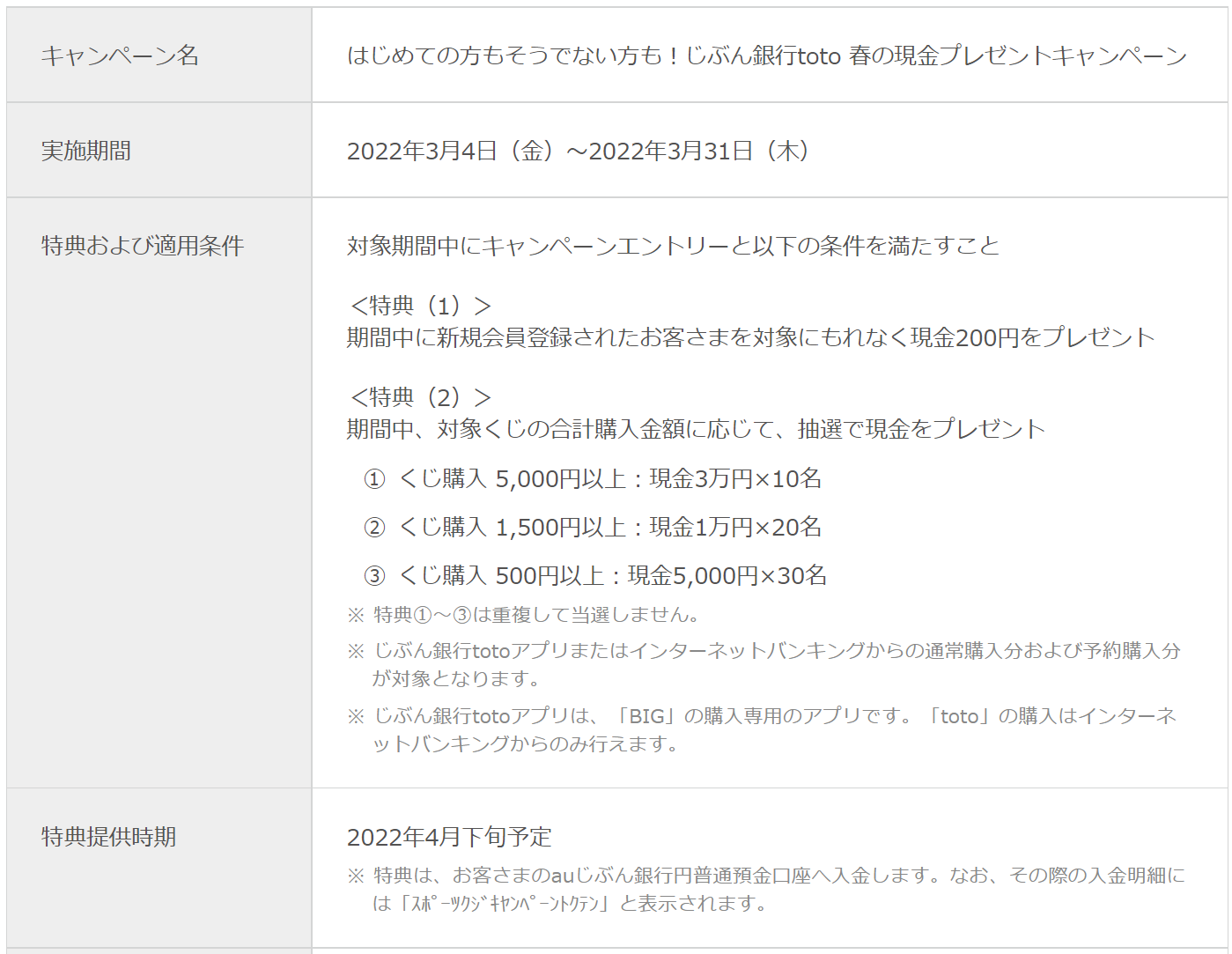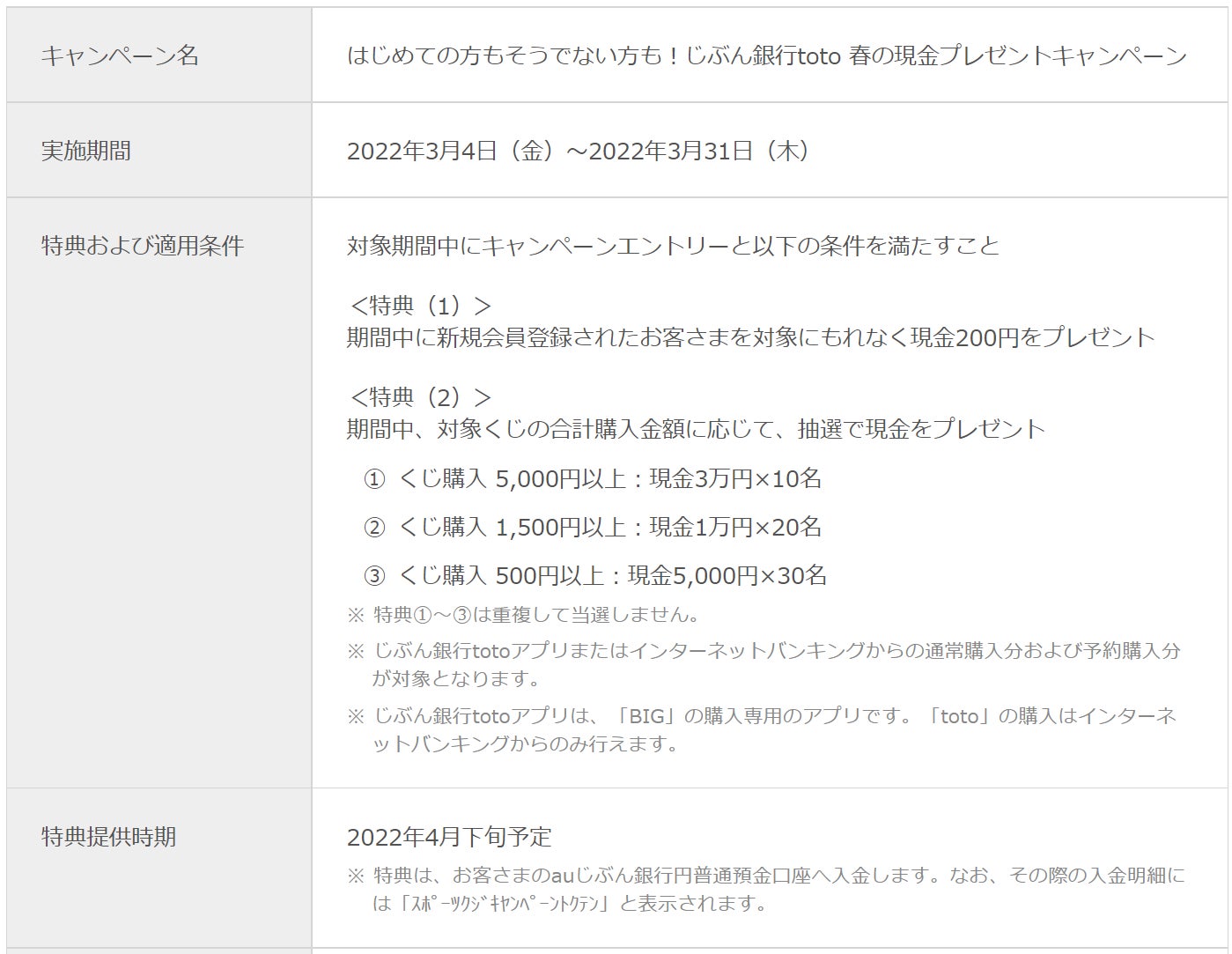 「はじめての方もそうでない方も!じぶん銀行toto 春の現金プレゼントキャンペーン」について