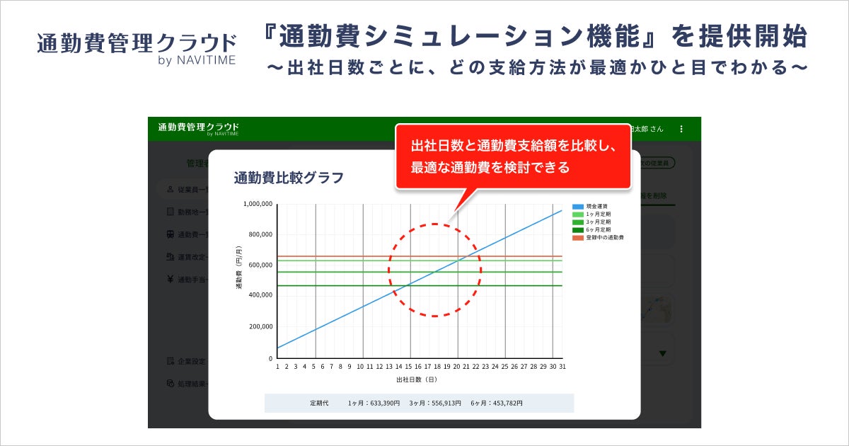 従業員の通勤費一括管理システム『通勤費管理クラウドby NAVITIME』、「通勤費比較グラフ」機能を提供開始