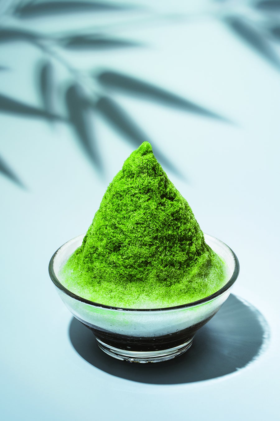小倉餡の上に氷をたっぷりかき、宇治抹茶と和三盆糖でおつくりした濃厚な抹茶蜜をかけた一番人気のかき氷です。