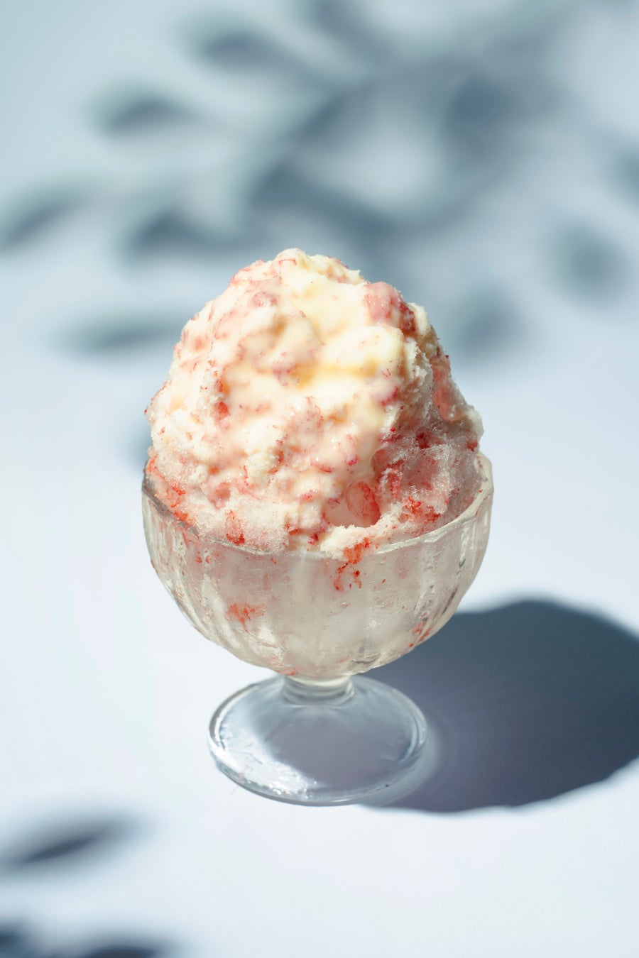 一口目はサッパリ、食べ進めていくと練乳が加わりクリーミーに。最後はチョコアイスとラズベリーソースの濃厚な味わいが楽しめる、食べ進める毎に新たなおいしさが生まれるかき氷です。