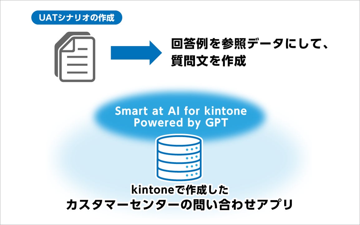 顧客の電話に自動応答を行う対話型AIの活用に向け、kintoneとM-SOLUTIONSが提供する「Smart at AI」のプラグインを利用して、受け入れテスト(UAT)のシナリオを作成しています。作成した質問文は、UATで対話型AIがどう回答するかのテストに使用されています。一問一答形式で処理を行うチャットベースの生成AIに対し、kintone+Smart at AIでは、APIコールの連続実行によって繰り返し処理を行えることから、時間と手間の大幅な削減が可能です。また、AIの活用により、業務担当者がシナリオを作成する際に起こり得るバイアスや偏りを防ぐことが見込まれ、受け入れテストの精度の向上が期待できます。
