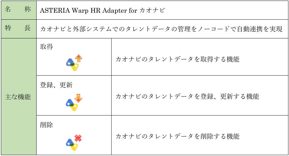 ■「ASTERIA Warp HR Adapter for カオナビ」の機能