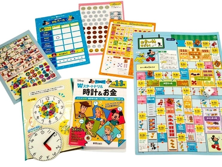 ●魅力的な5大グッズ:各ドリルには、お子さまの学習を強力にサポートし、達成感を高めるための「5大グッズ」がついています。特に、1ページ終えるごとにシールを貼り、1冊完成するとディズニーキャラクターのイラストが完成する「パズルシール」は、お子さまの「できた!」を視覚化し、学習継続の大きなモチベーションとなります。また、「ルールボード」を使って親子で一緒に学習目標を設定することで、お子さまの主体性を育みながら、計画的な学習習慣を無理なく身につけることができます。