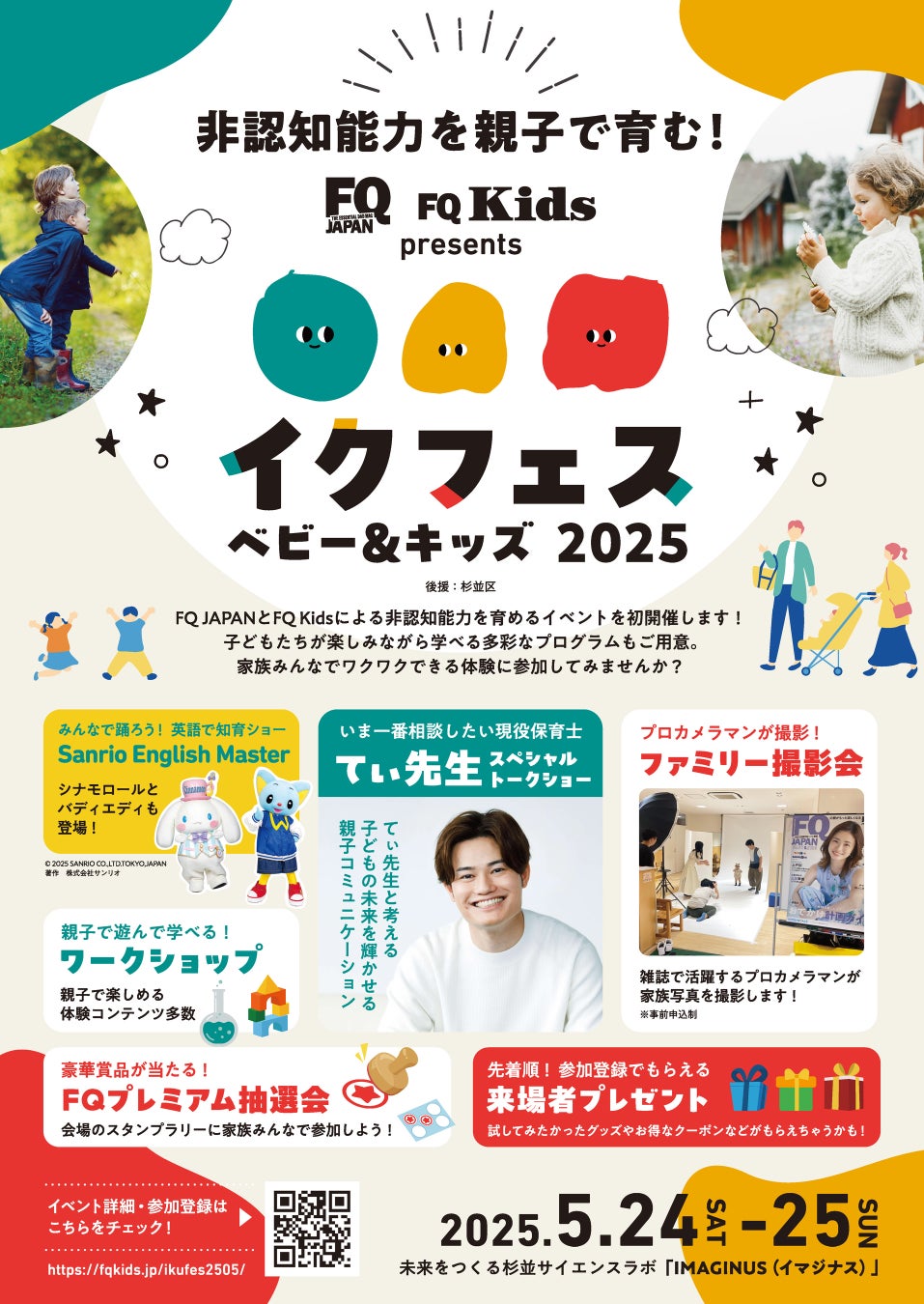 FQ JAPAN、FQ Kidsが主催するイベント「イクフェス ベビー&キッズ 2025」に出展し、「ディズニー/Wスタートドリル」の実物を世界初披露します。「Wスタートドリル」を実際に体験していただくことができます。各種プレゼントもご用意していますので、ぜひご来場ください!